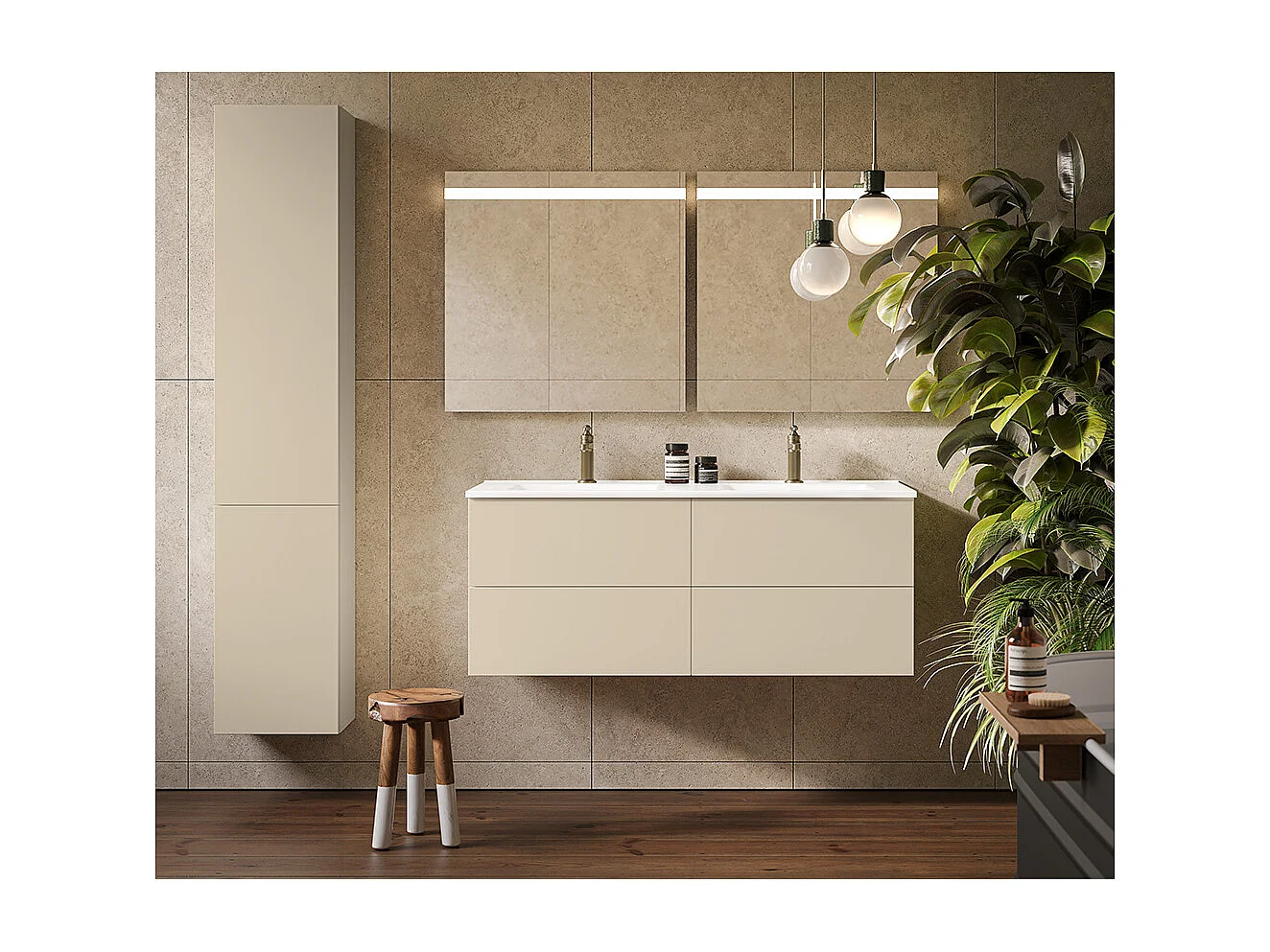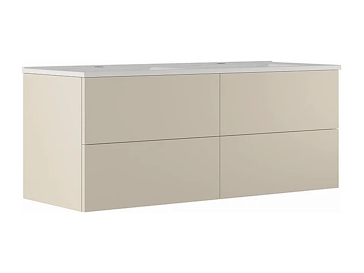 Etherische Badkamerkast, Duifgrijs Afwerking, 2 Lades En Centrale Wastafel