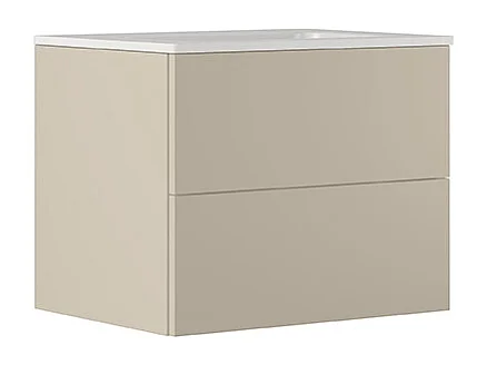Etherische Badkamerkast, Duifgrijs Afwerking, 2 Lades En Centrale Wastafel