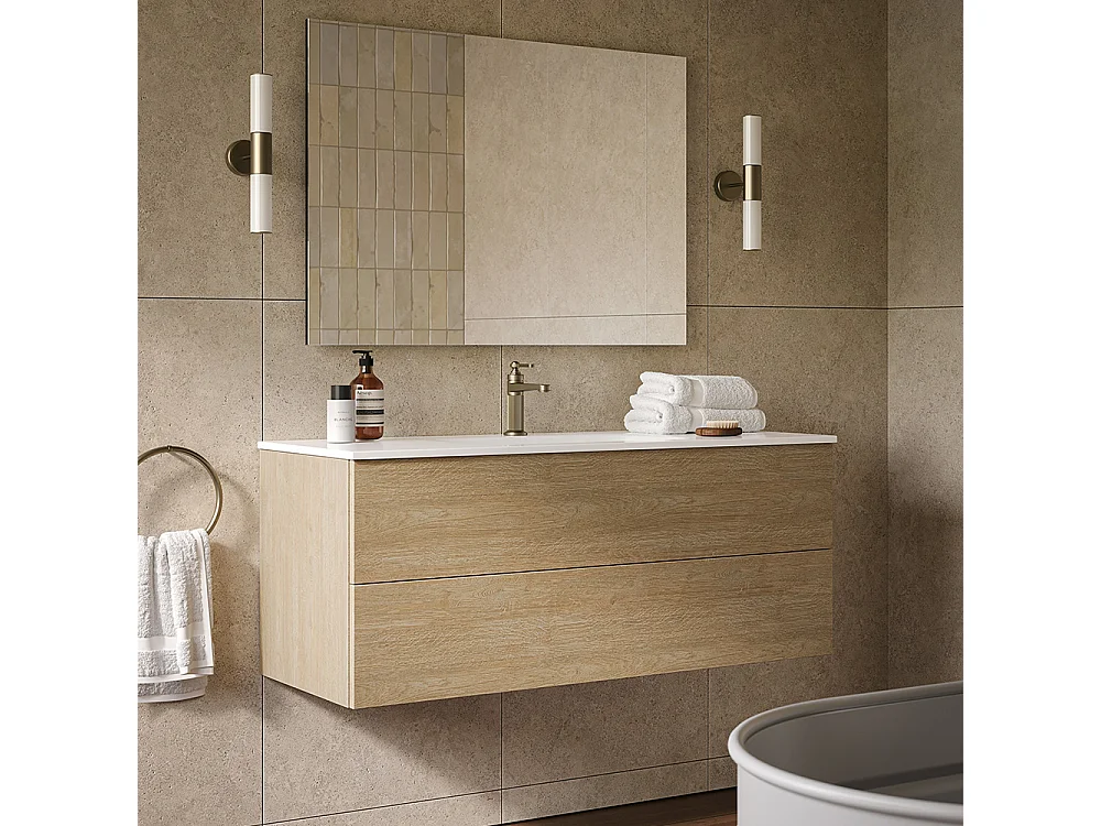 Etherische Badkamerkast, Gebleekte Eikenhouten Afwerking, 2 Lades En Centrale Wastafel