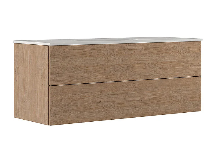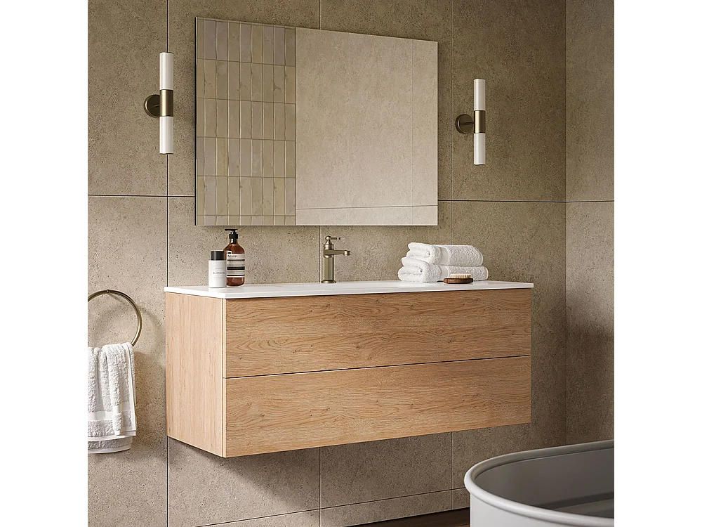 Etherische Badkamerkast, Natuurlijke Eikenhouten Afwerking, 2 Lades En Centrale Wastafel