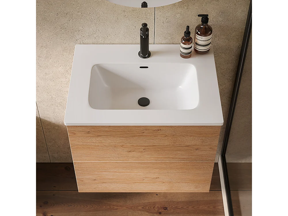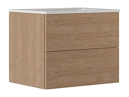 Etherische Badkamerkast, Natuurlijke Eikenhouten Afwerking, 2 Lades En Centrale Wastafel