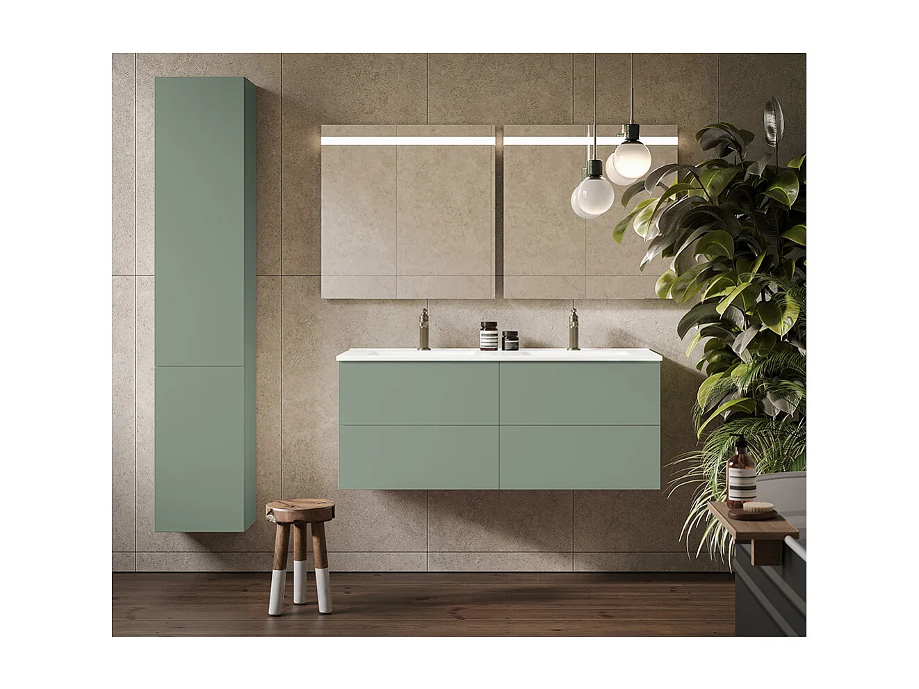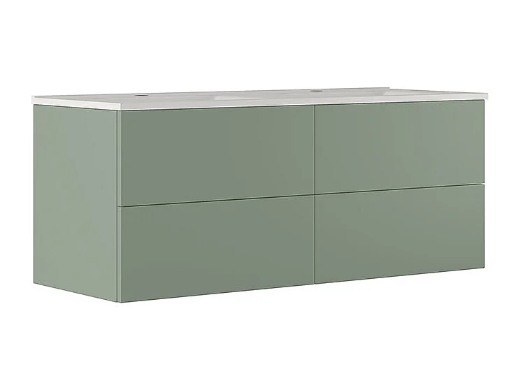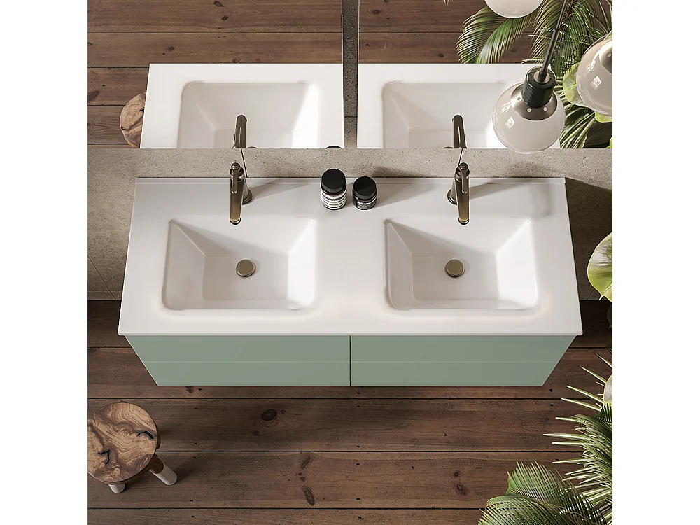 Etherische Badkamerkast, Salieafwerking, 4 Lades En Een Dubbele Wastafel.