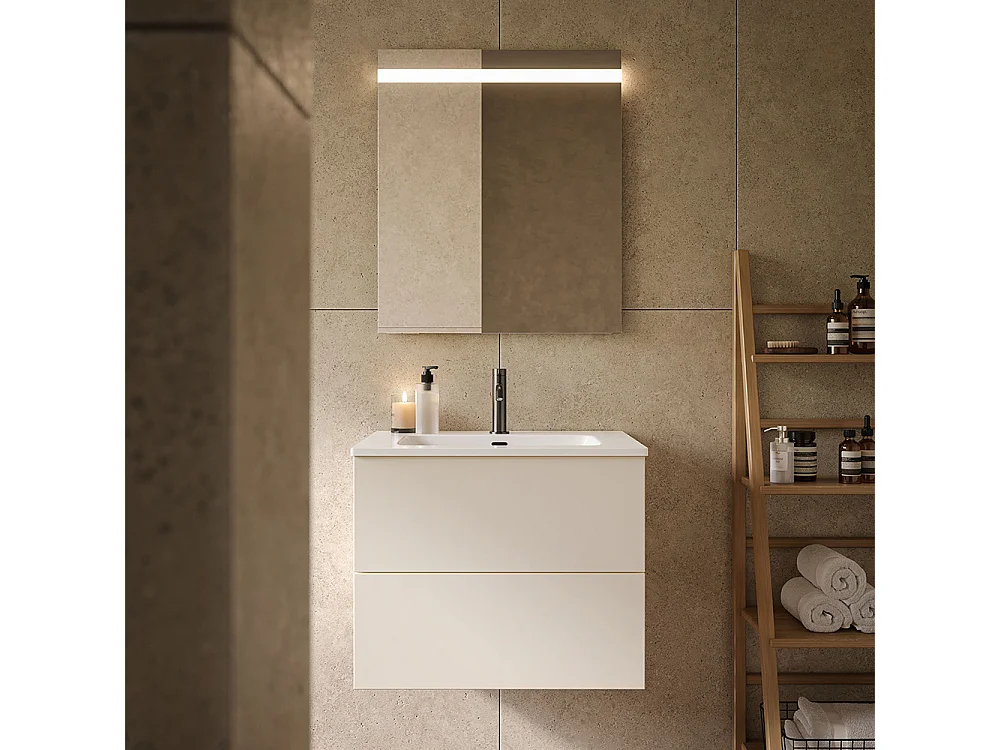 Etherische Badkamerkast, Witte Afwerking, 2 Lades En Centrale Wastafel