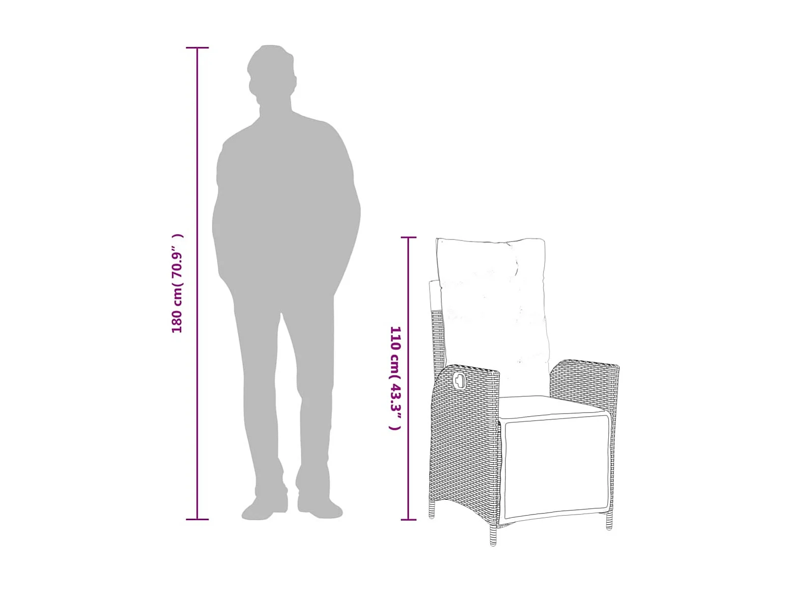 Anselm 7-delige Tuinset met kussens poly rattan grijs