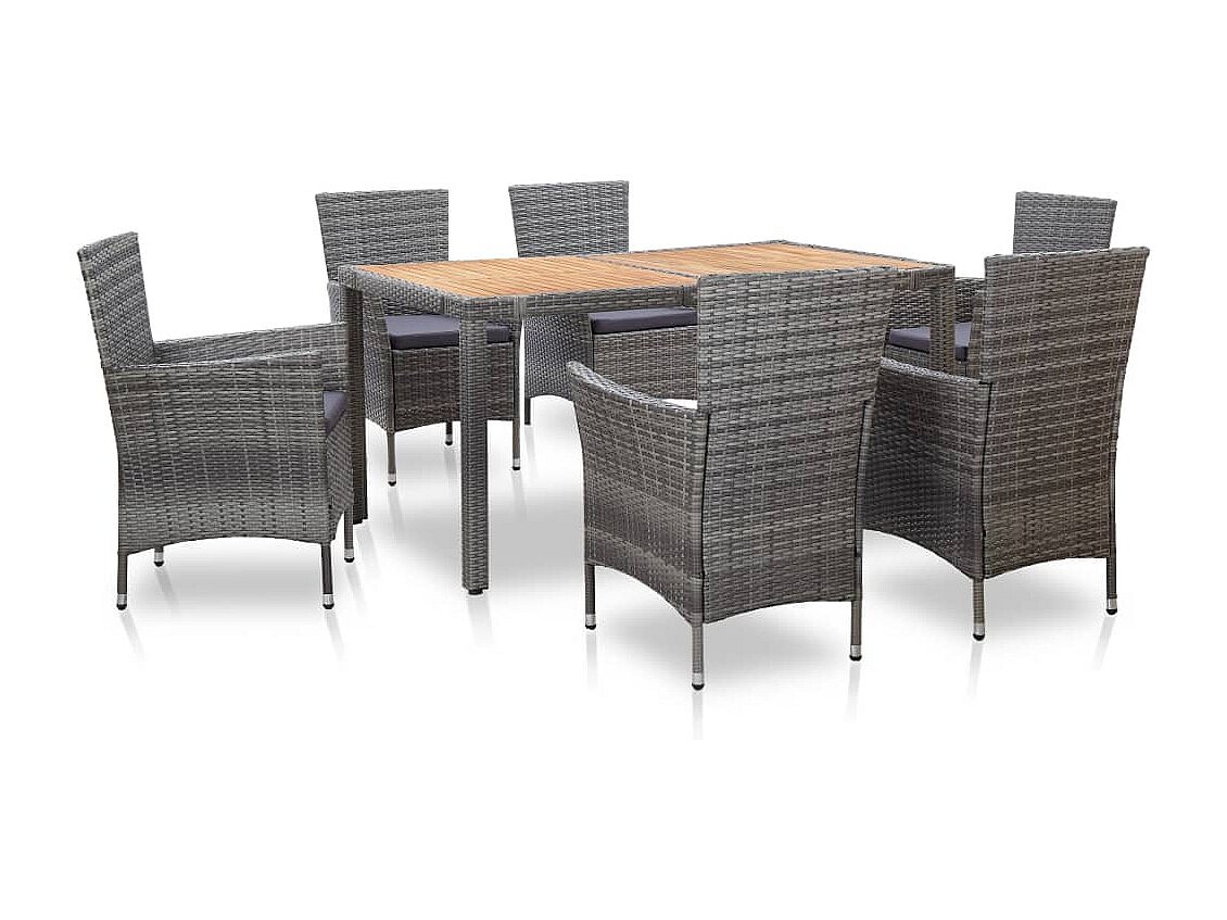 Ewald 7-delige Tuinset met kussens poly rattan grijs