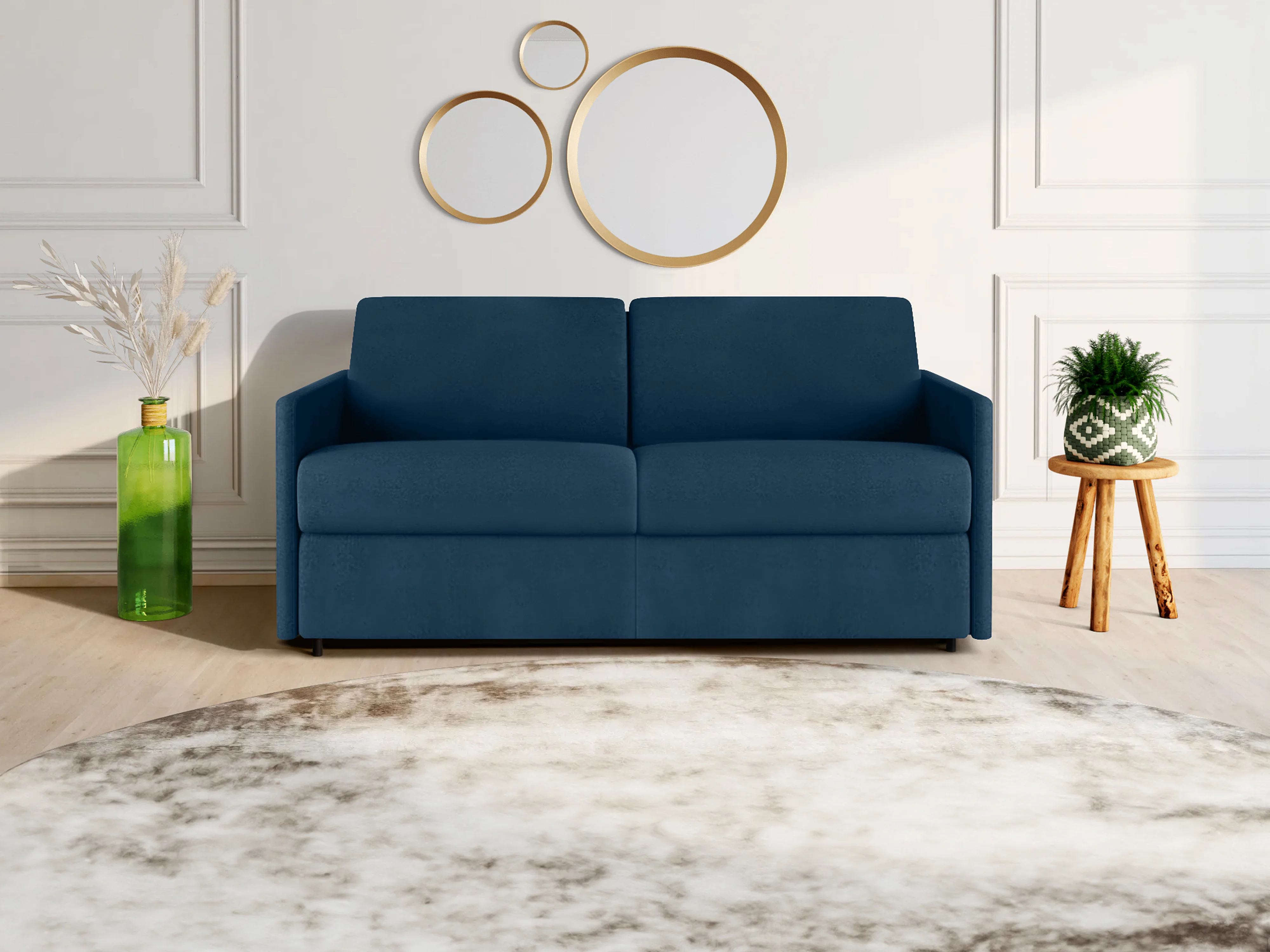 Express driezits slaapbank van stof - Lattenbodem 140 cm - Matras 18 cm - Donkerblauw - CALIFE