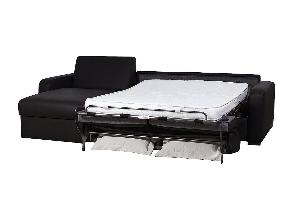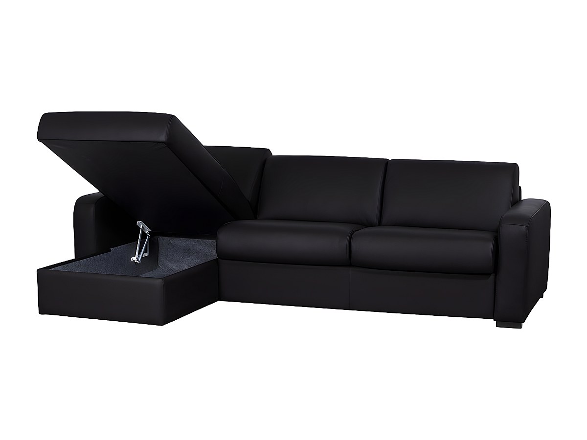 Express-hoekbedbank van leer BEVIS - Zwart - Hoek links