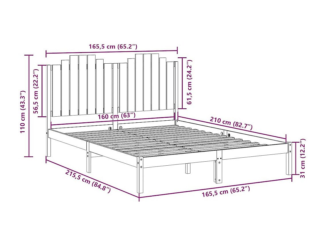 Extra lang bedframe zonder matras 160x210 cm massief hout