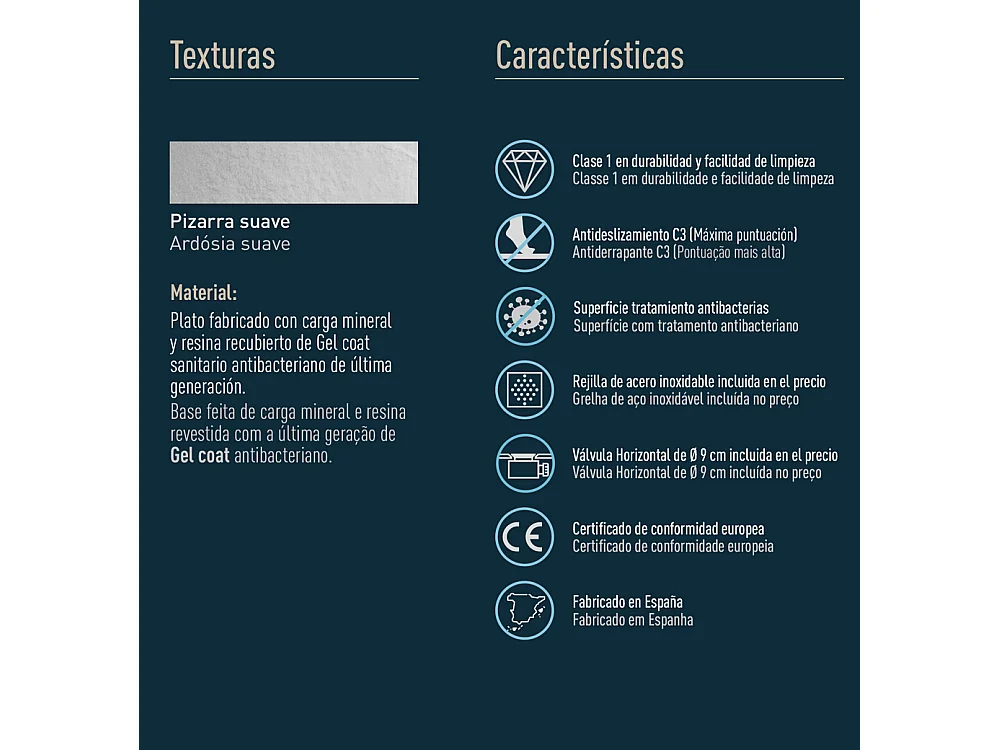 Extraplatte Antislip Resin Douchebak | Afvoerknop en Rooster | Zachte Leisteen | Wit | 80 X 170cm