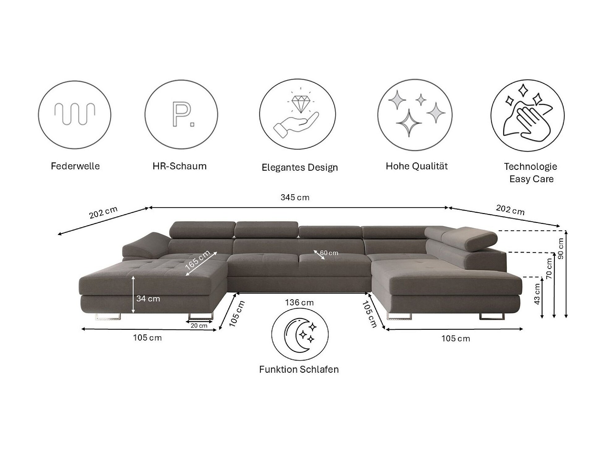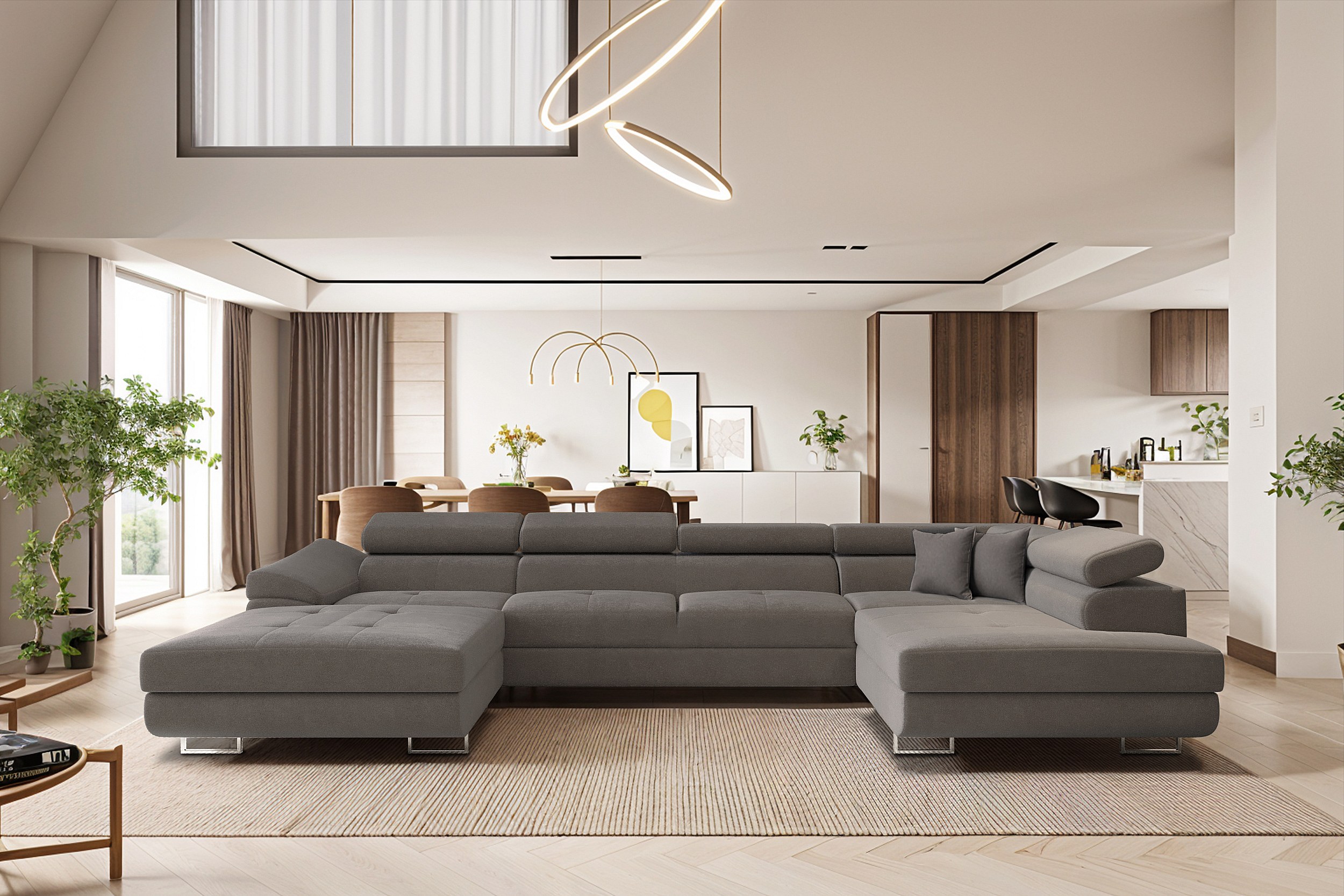 FALIO II U-vormige hoekbank met slaapfunctie, stof Noel, grijs, rechts