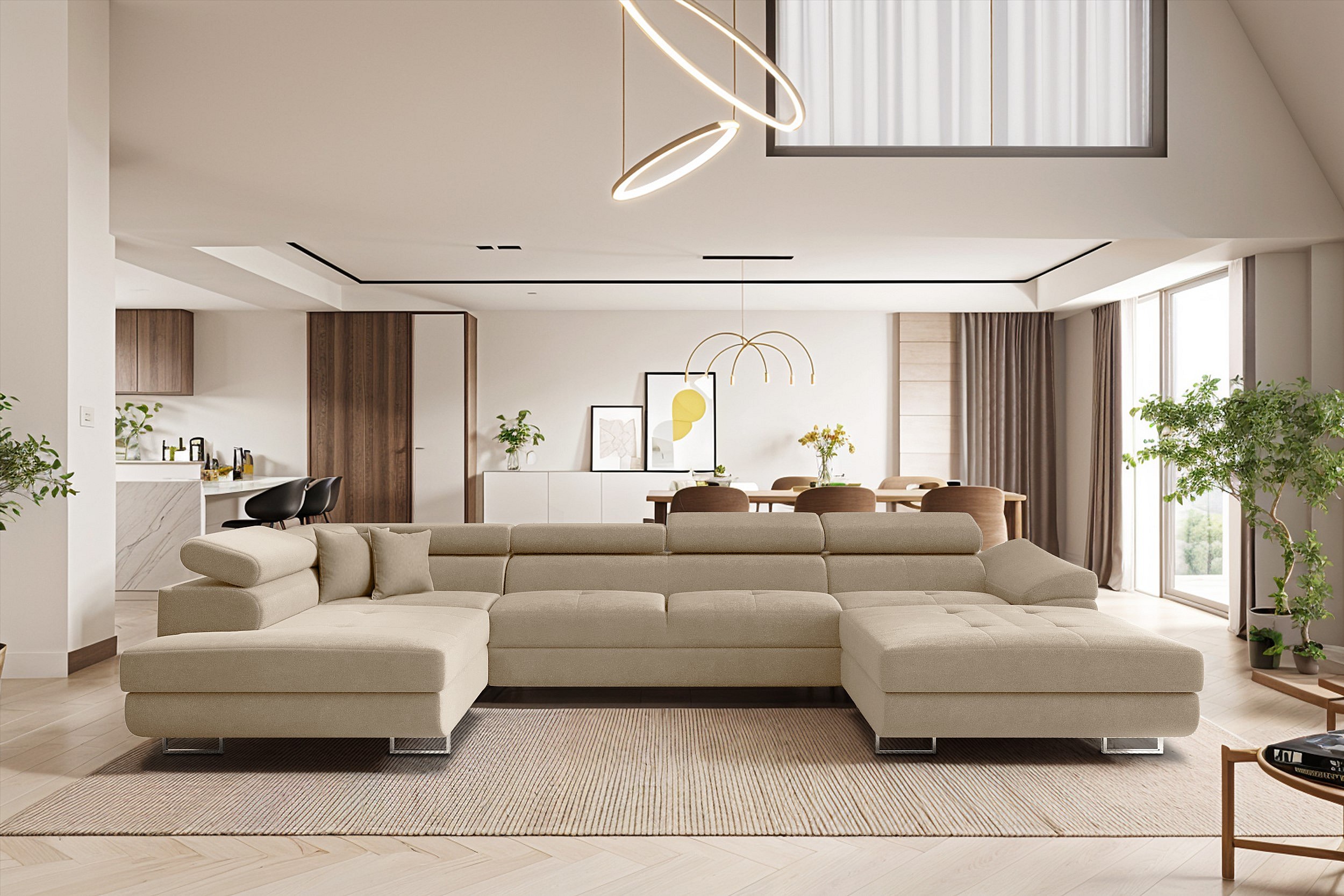 FALIO II U-vormige hoekbank met slaapfunctie, stof Noel, lichtbeige, links