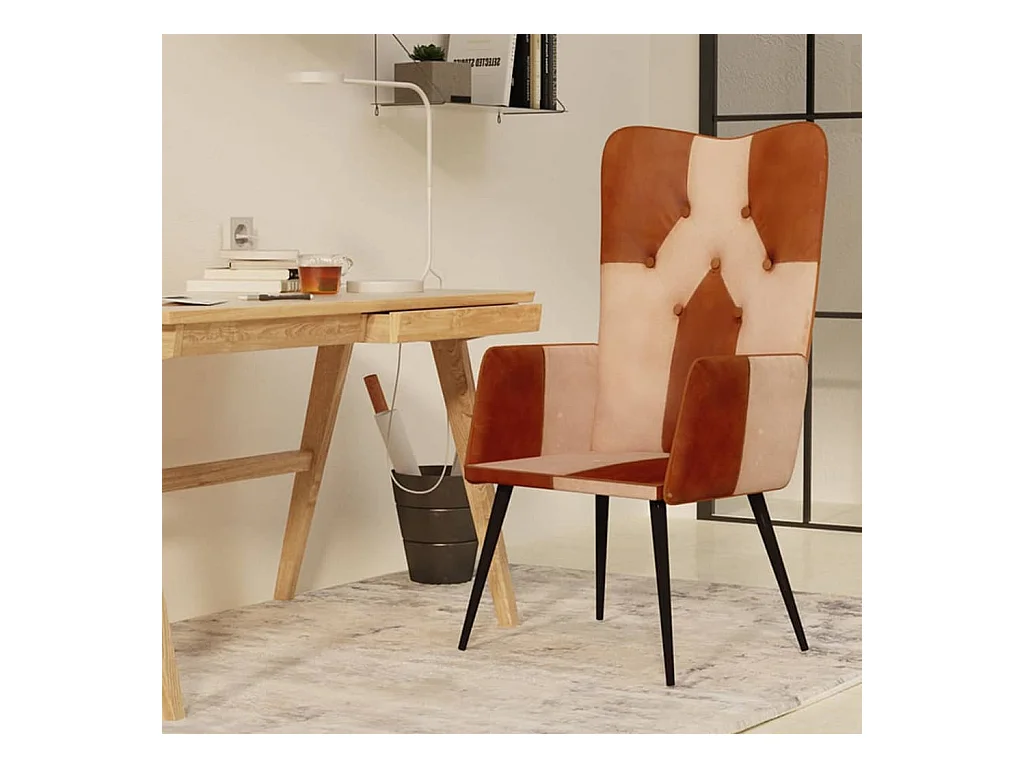 Fauteuil echt leer bruin en crèmekleurig NL299500