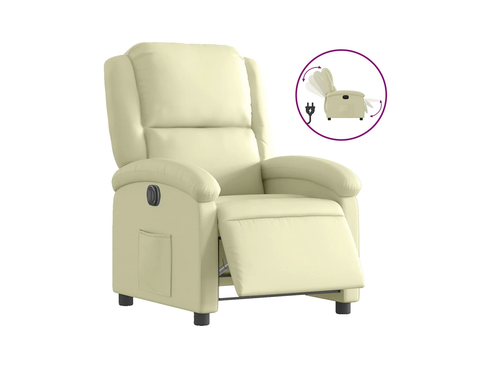 Fauteuil elektrisch verstelbaar echt leer crèmekleurig