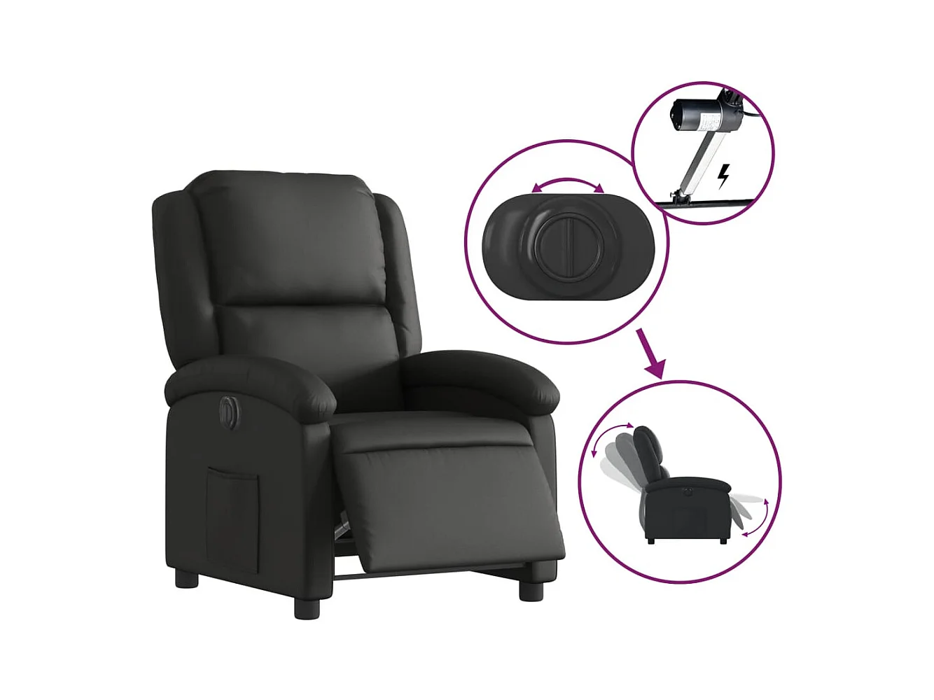 Fauteuil elektrisch verstelbaar echt leer zwart