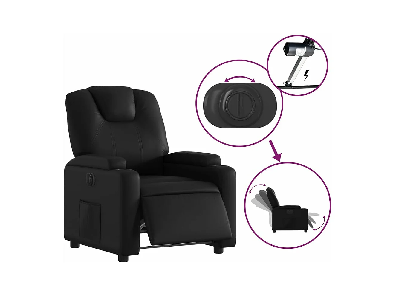 Fauteuil elektrisch verstelbaar kunstleer zwart
