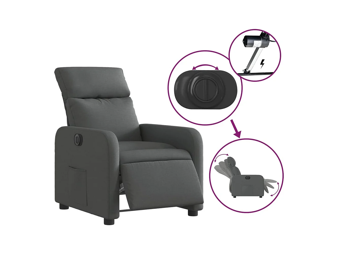 Fauteuil elektrisch verstelbaar stof donkergrijs NL388974