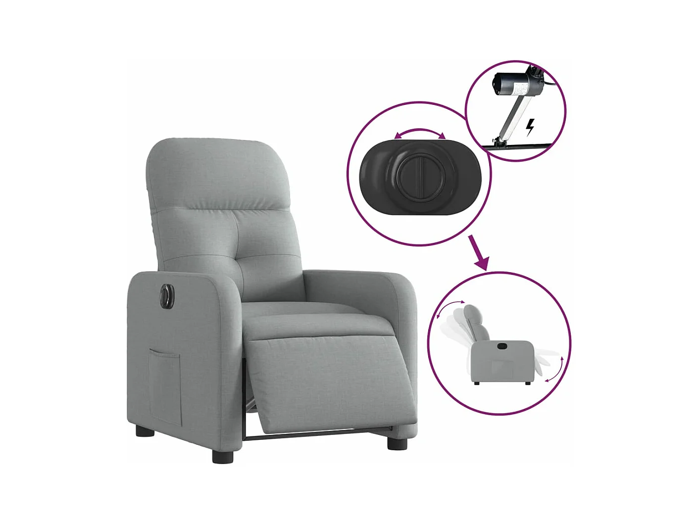Fauteuil elektrisch verstelbaar stof lichtgrijs NL803706