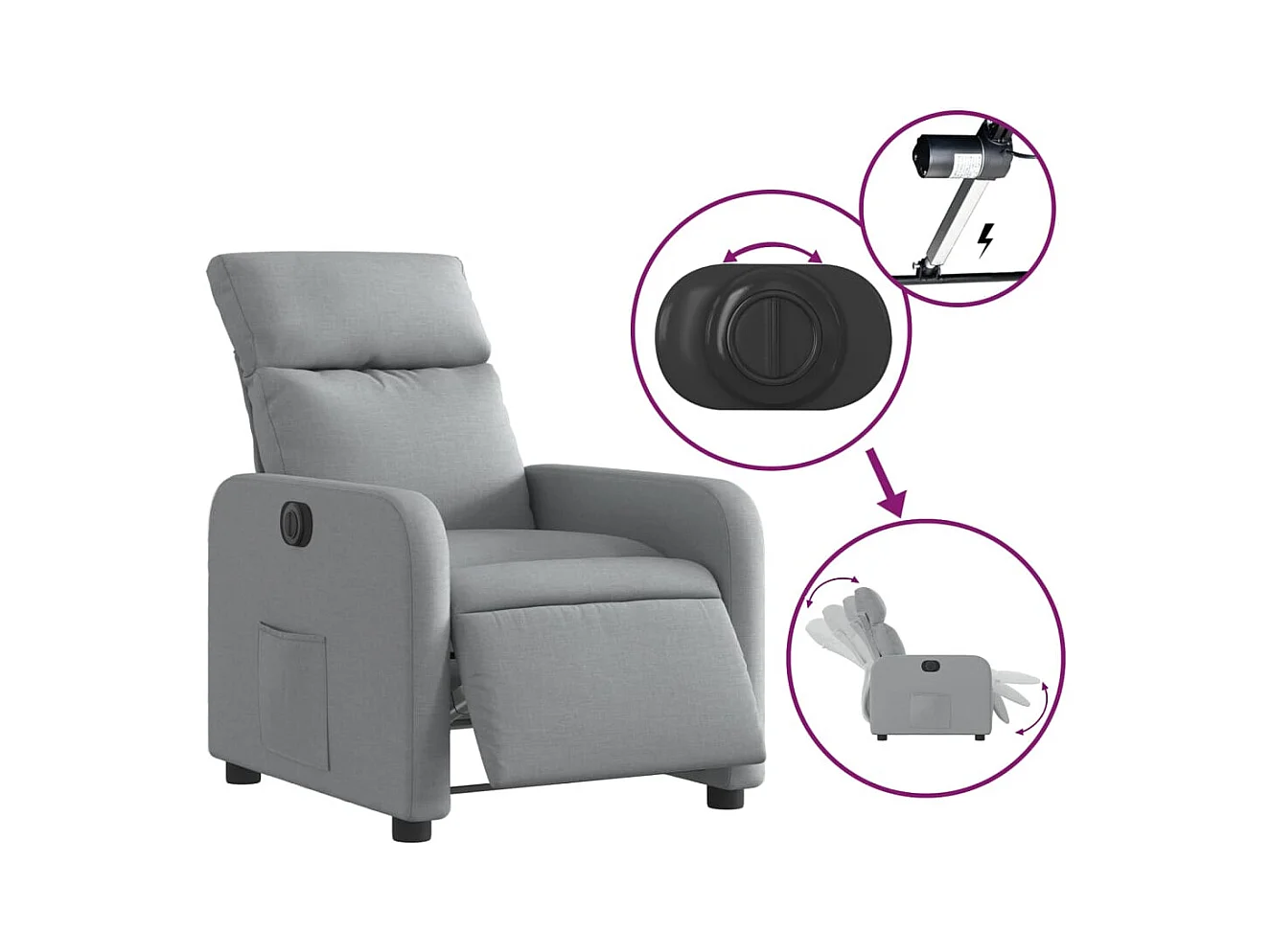 Fauteuil elektrisch verstelbaar stof lichtgrijs NL145794