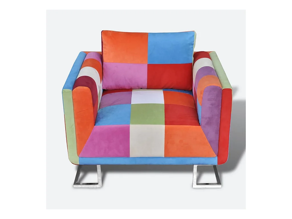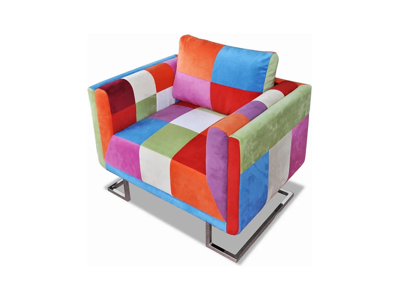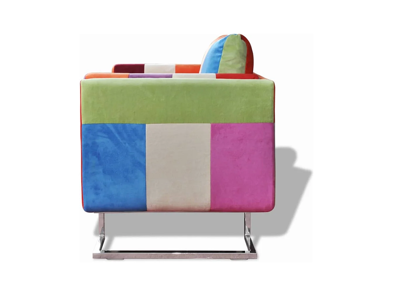 Fauteuil met patchwork ontwerp en verchroomde poten kubus stof