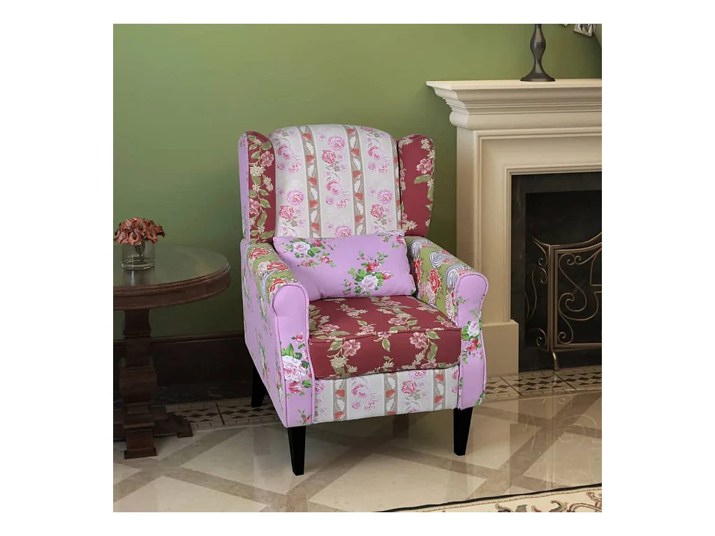 Fauteuil met patchwork ontwerp en verchroomde poten kubus stof NL737932
