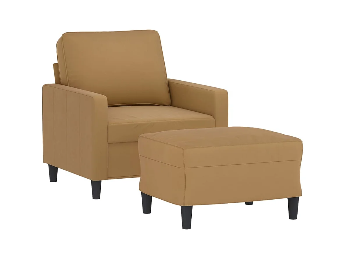 Fauteuil met voetenbank 60 cm fluweel bruin BE765494
