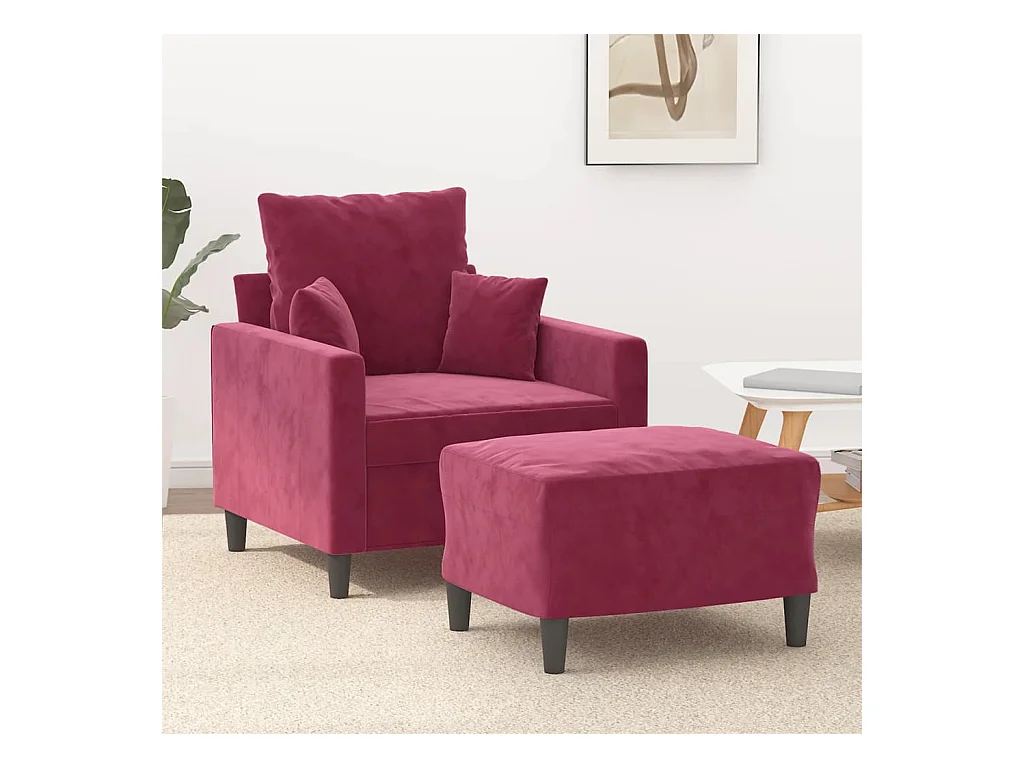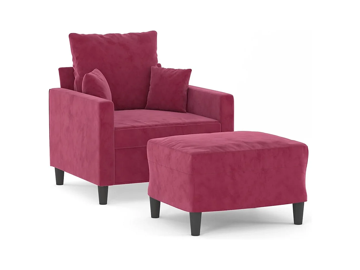 Fauteuil met voetenbank 60 cm fluweel wijnrood BE475022