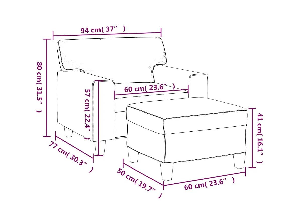 Fauteuil met voetenbank 60 cm kunstleer grijs