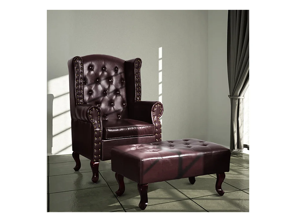 Fauteuil met voetenbankje kunstleer donkerbruin