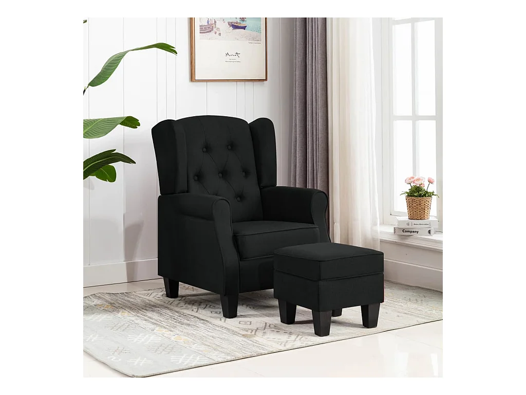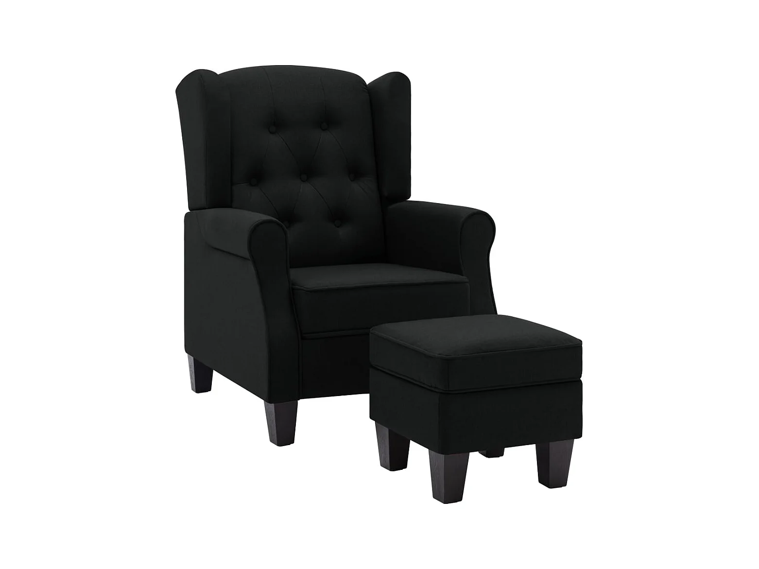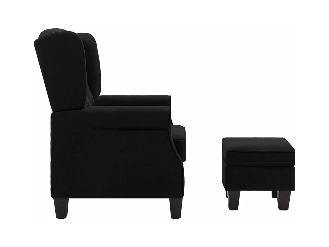 Fauteuil met voetenbank 60 cm stof zwart BE811695