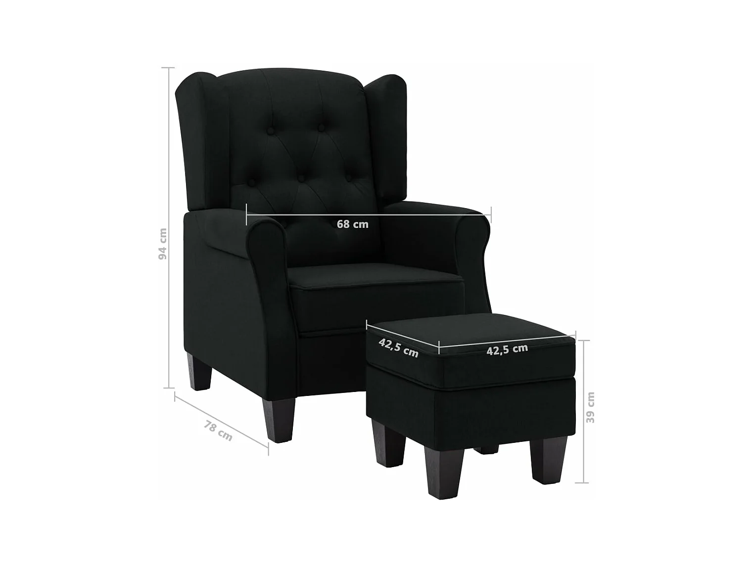 Fauteuil met voetenbank 60 cm stof zwart NL227114