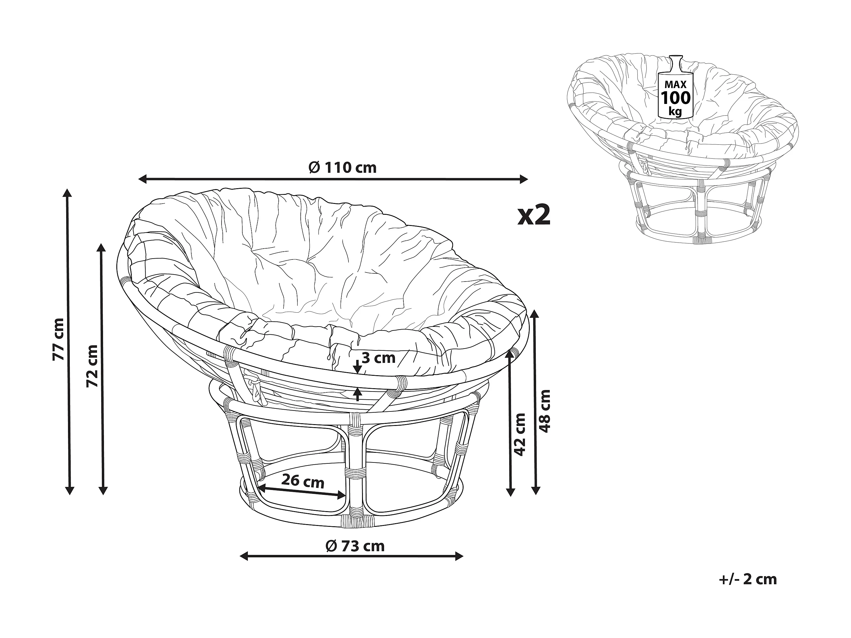 Set van 2 tuinstoelen met kussens SALVO Rotan Natuurlijk