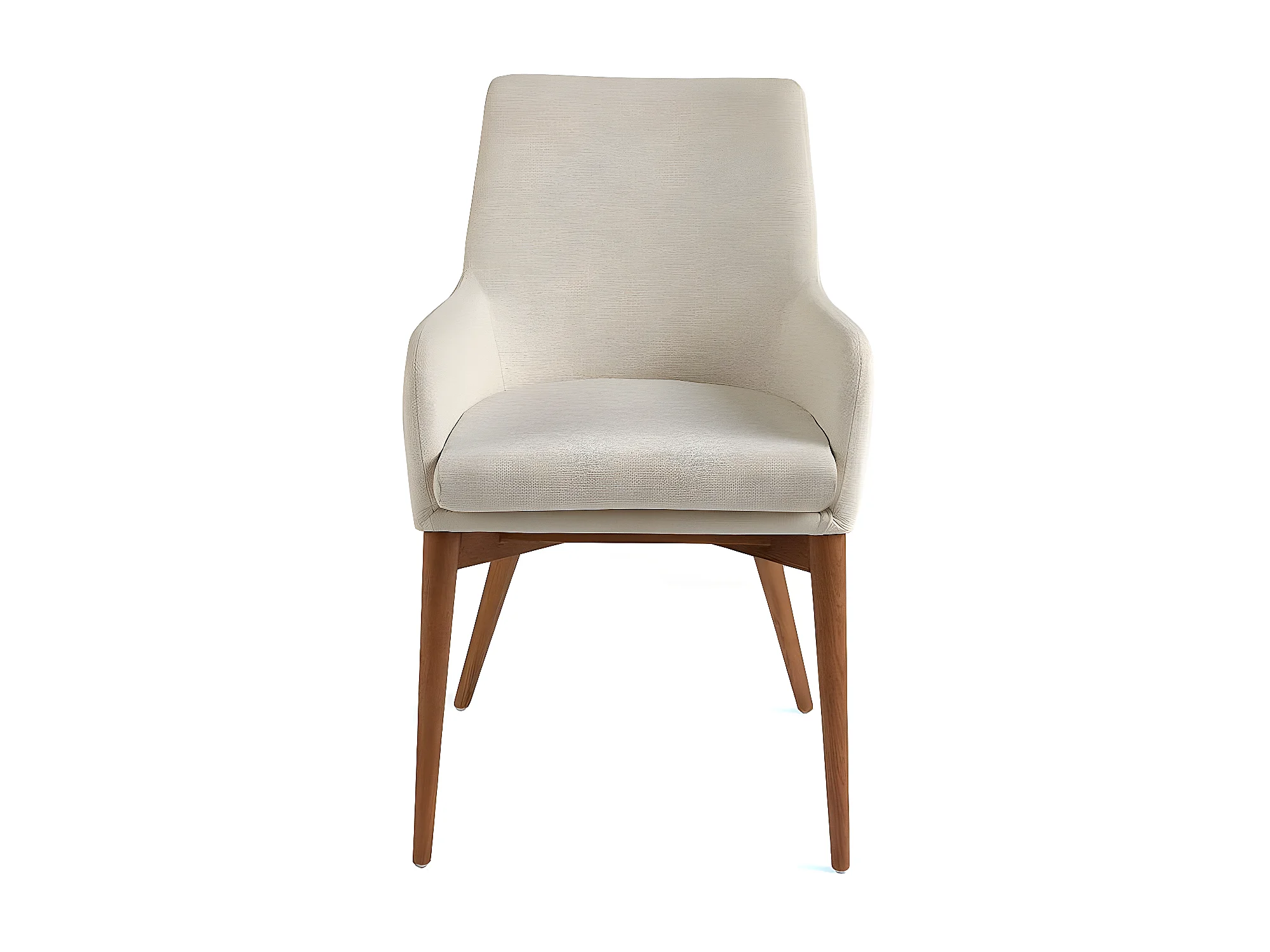 Lesly beige gelakte houten fauteuil en beige stoffen zitting