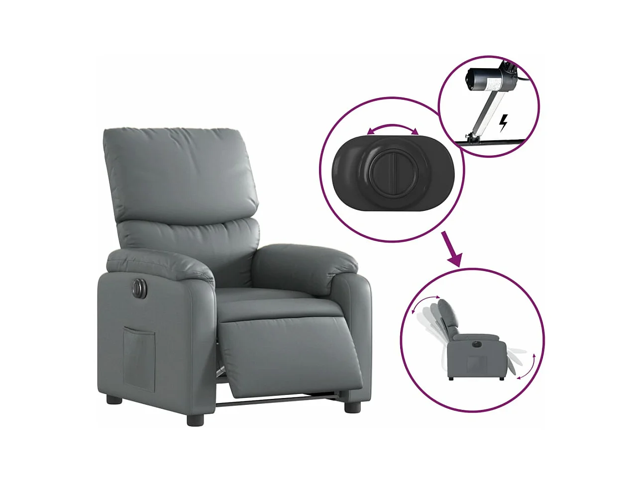 Fauteuil verstelbaar elektrisch kunstleer grijs NL658806