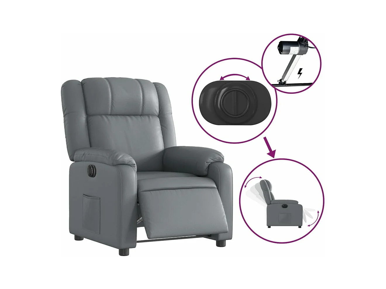 Fauteuil verstelbaar elektrisch kunstleer grijs NL801466