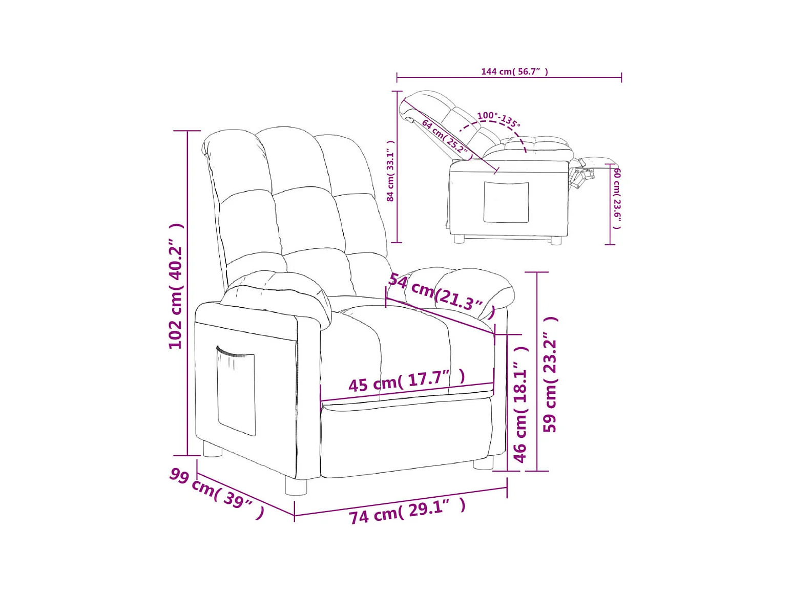 Relaxfauteuil stof met handmatig relaxmechanisme grijs