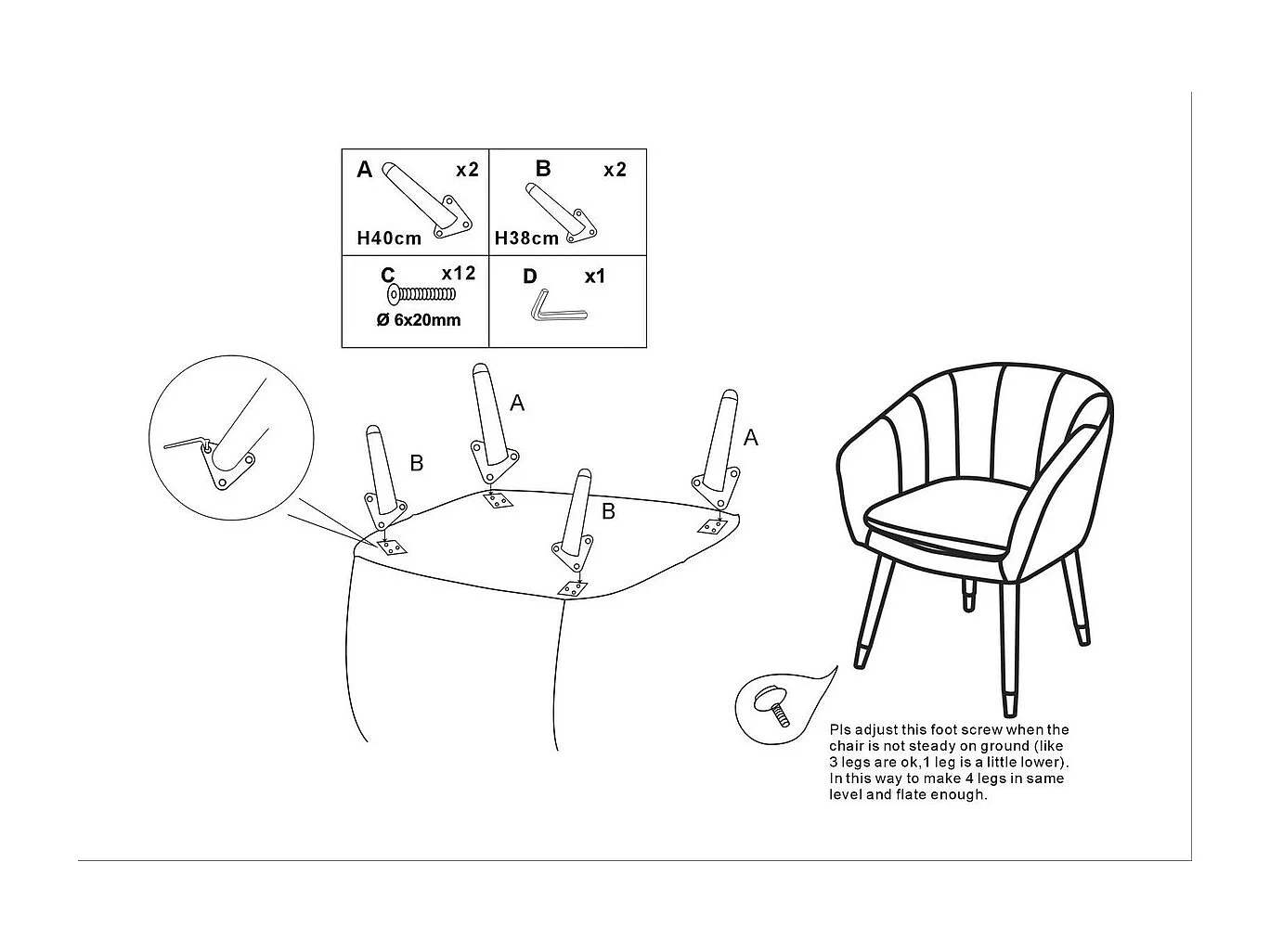 Fauteuil VKH319, Groen, 62x58x78 cm, Kendra Home