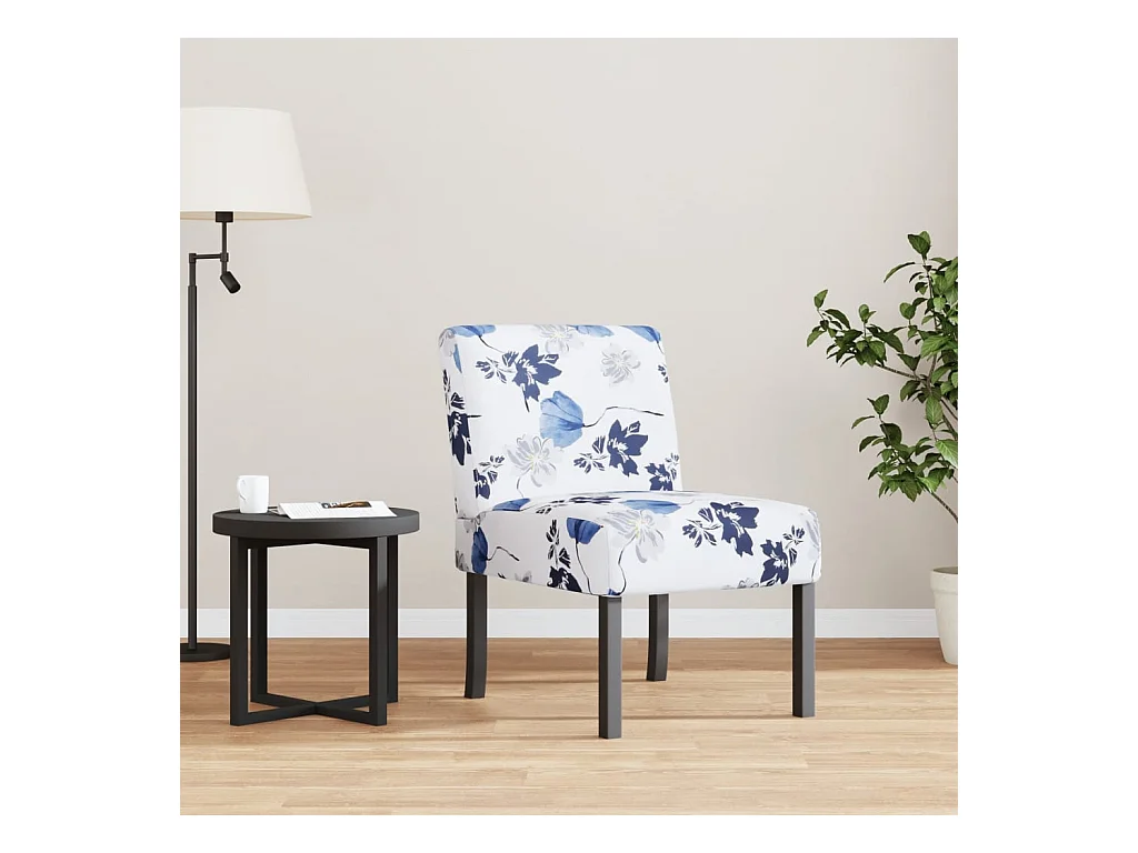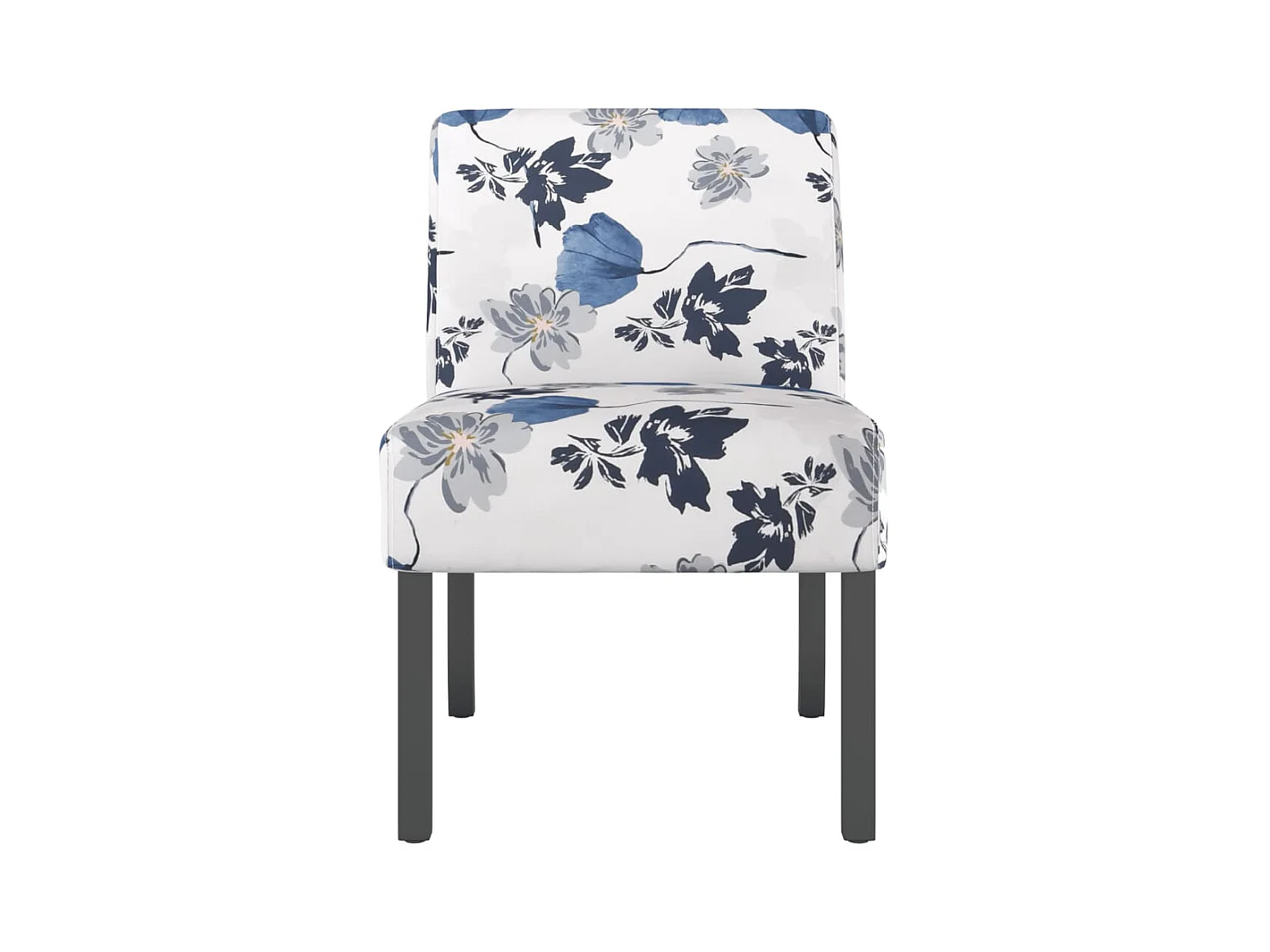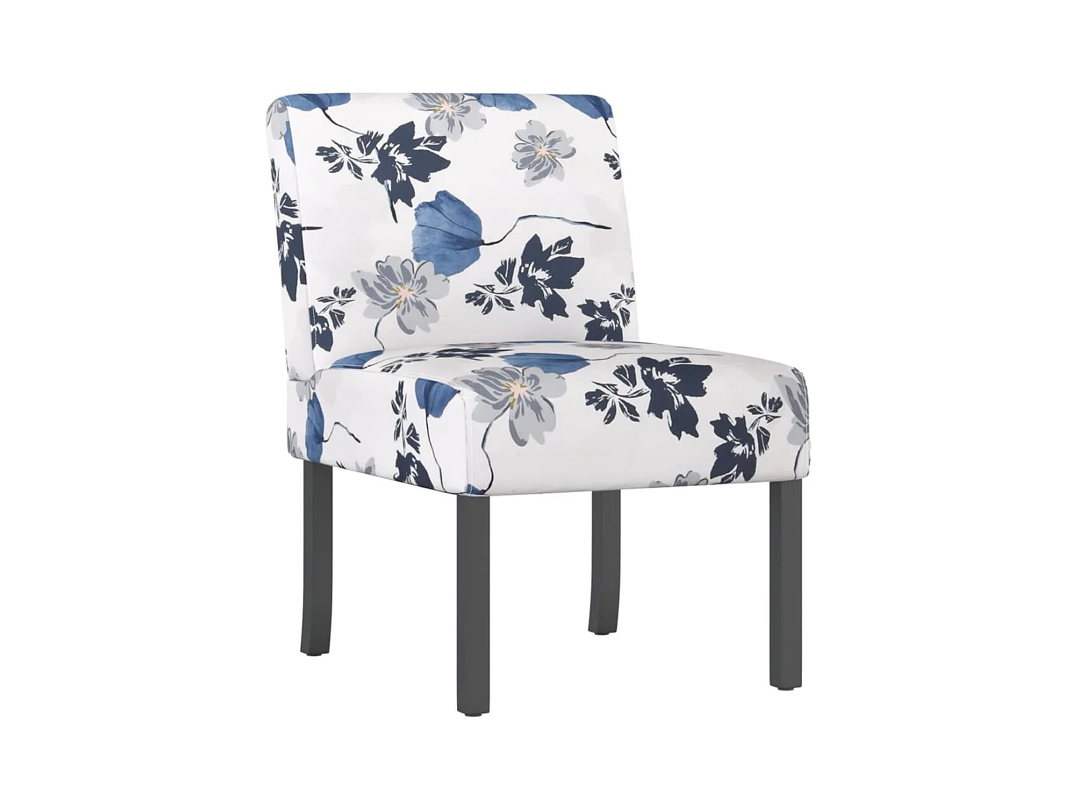 Fauteuil zonder armleuningen blauwe stof met bloemen