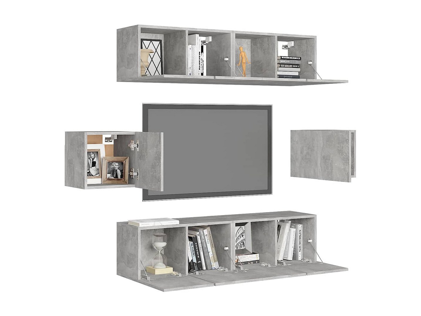 Ferenc 6-delige Tv-meubelset bewerkt hout betongrijs