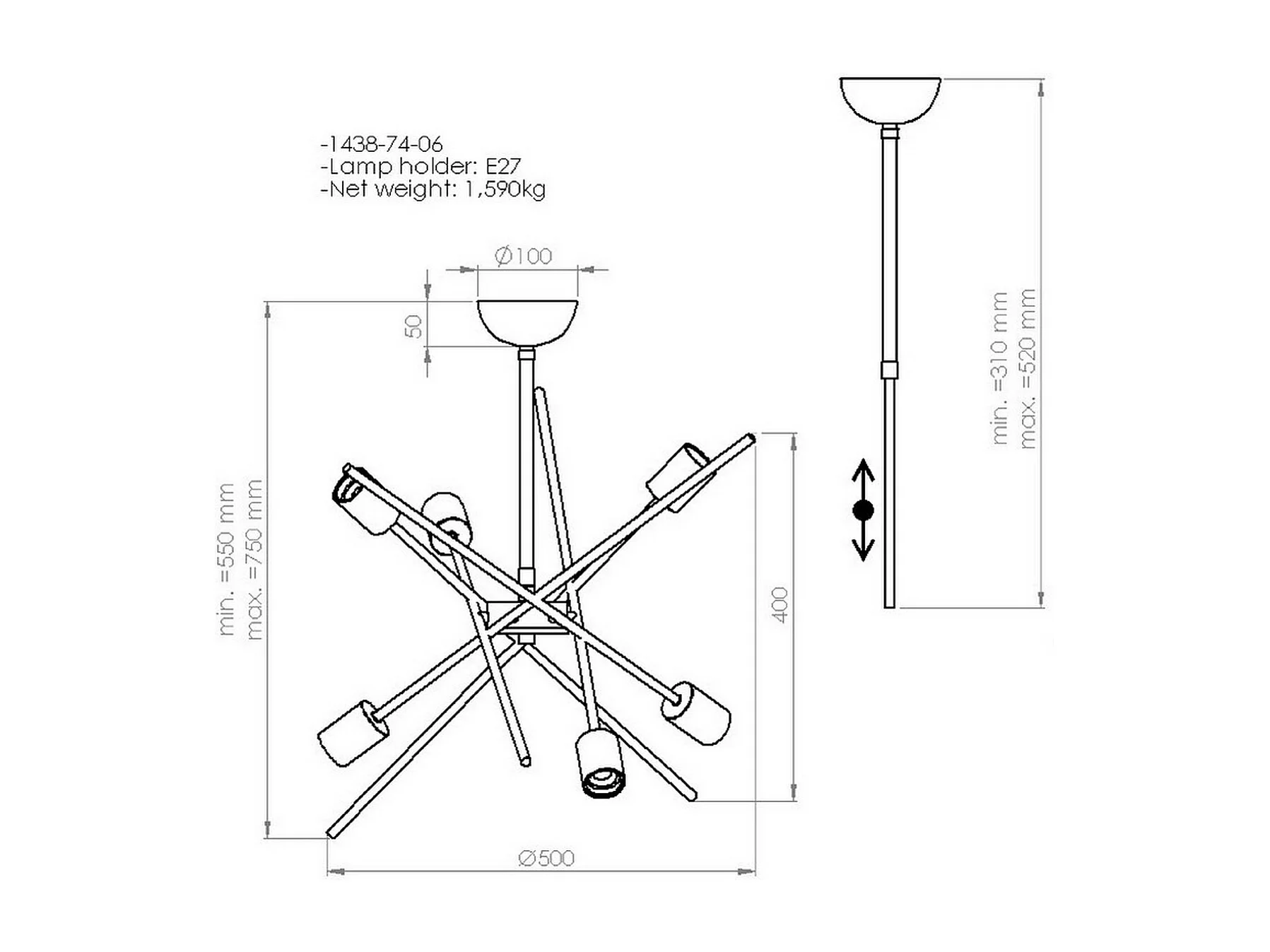 Hanglamp Ferrara - Zwart - 50x50x75 cm - EPIKASA