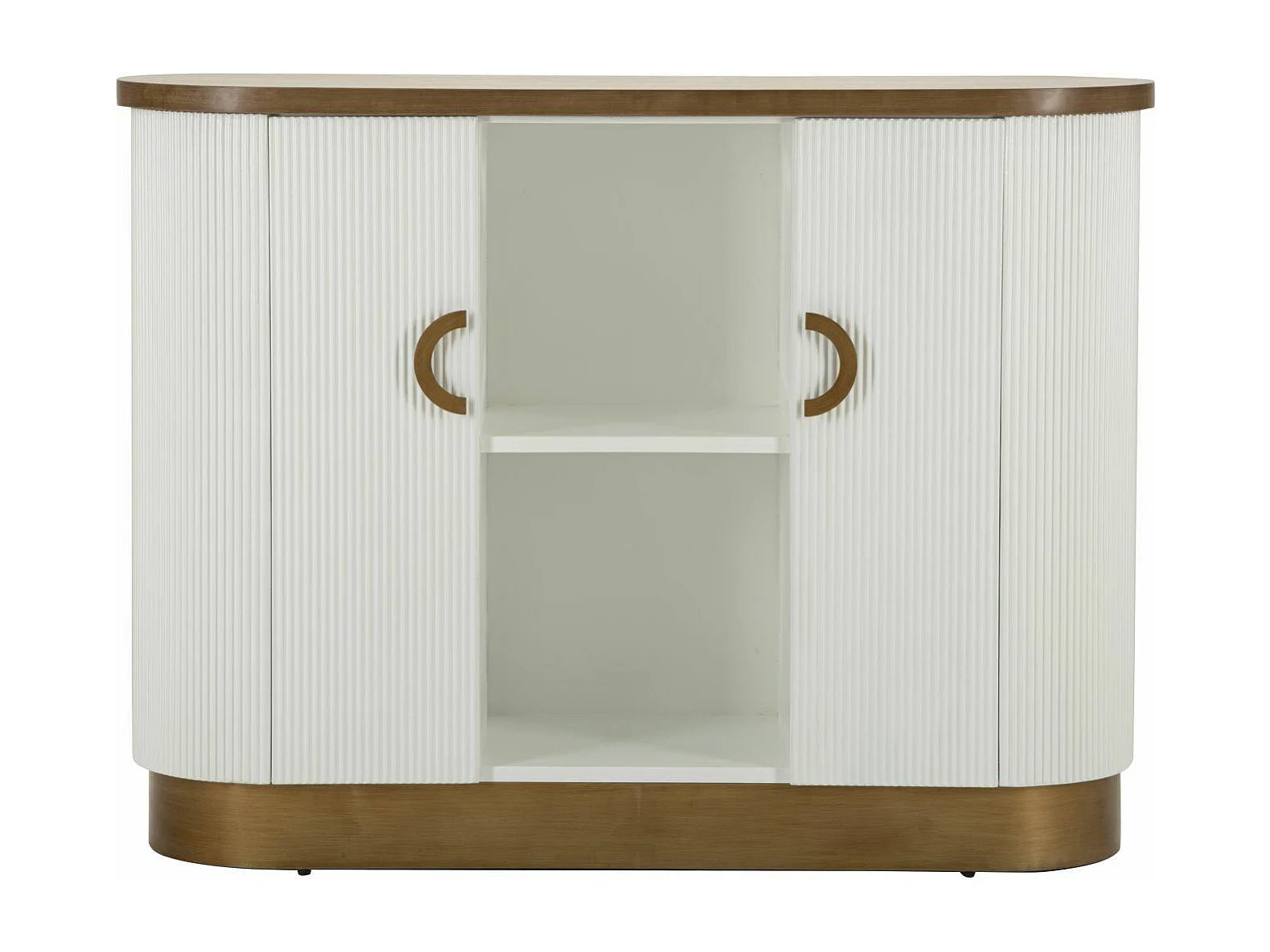 Ferrule dressoir, Woonkamerbuffet, Woonkamerdressoir, Keukenkast, 121x41 h90 cm, Wit en Bruin