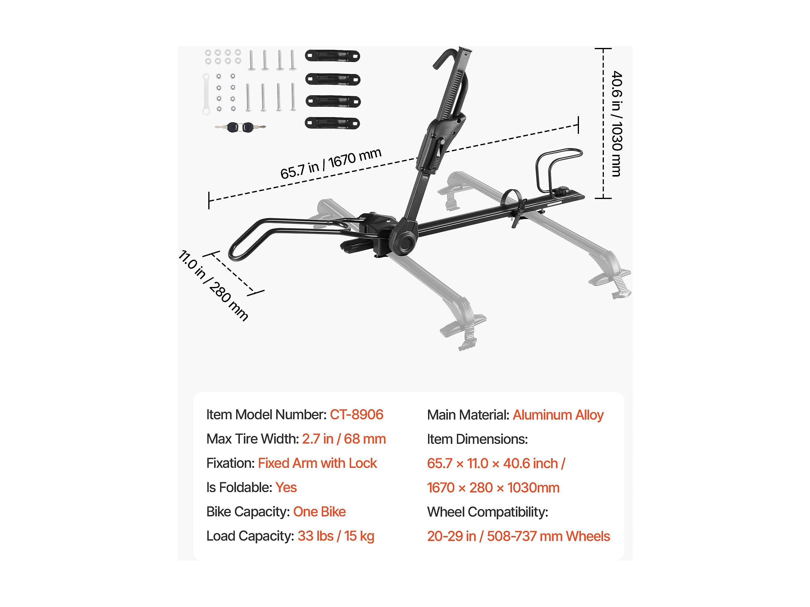 Fietsendragers SucceBuy voor Dak Opvouwbaar, Draagvermogen 15 kg, met Vergrendelingssysteem, Compatibel met T-Sleuf Dwarsbalken
