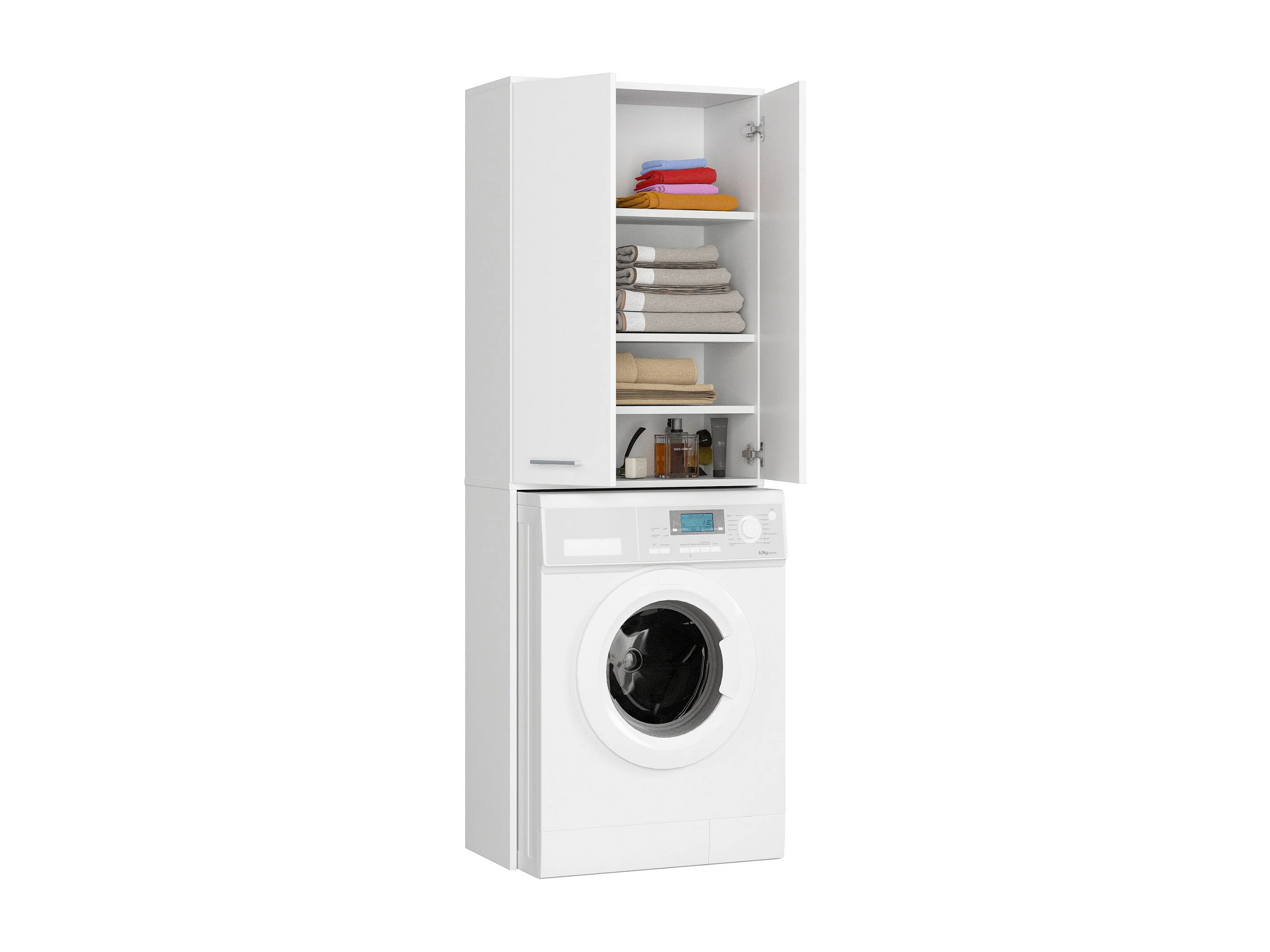 Badkamerkast voor Wasmachine FIN / Hoge Wasmachinekast met 2 Deuren / AKORD Furniture Factory / Wit / 64 x 180 x 30 cm