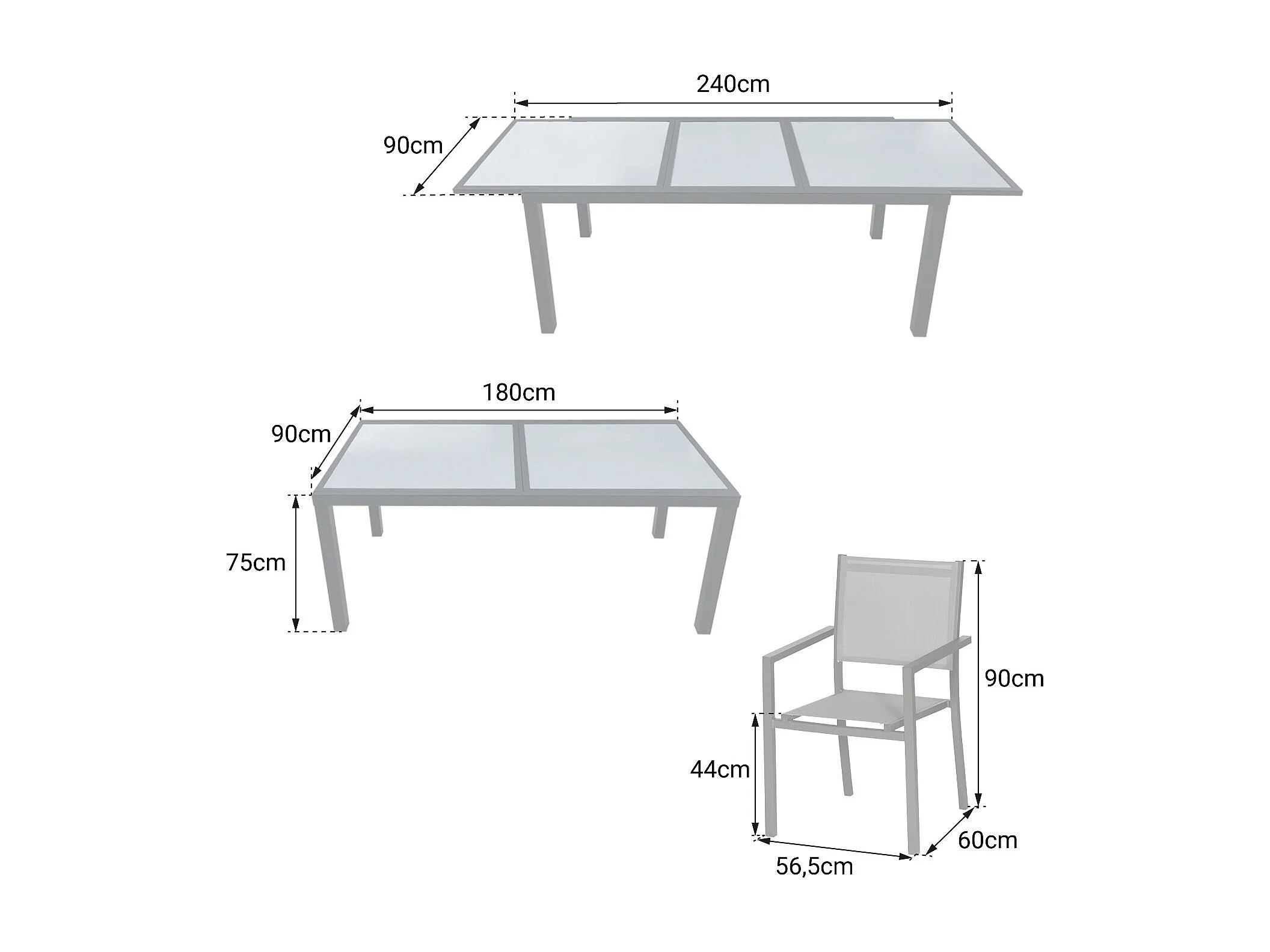FIRENZE grijs textilene uittrekbare tuinset 8 zitplaatsen - wit aluminium