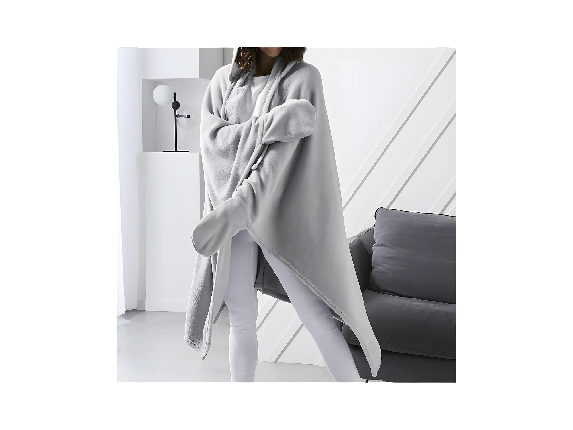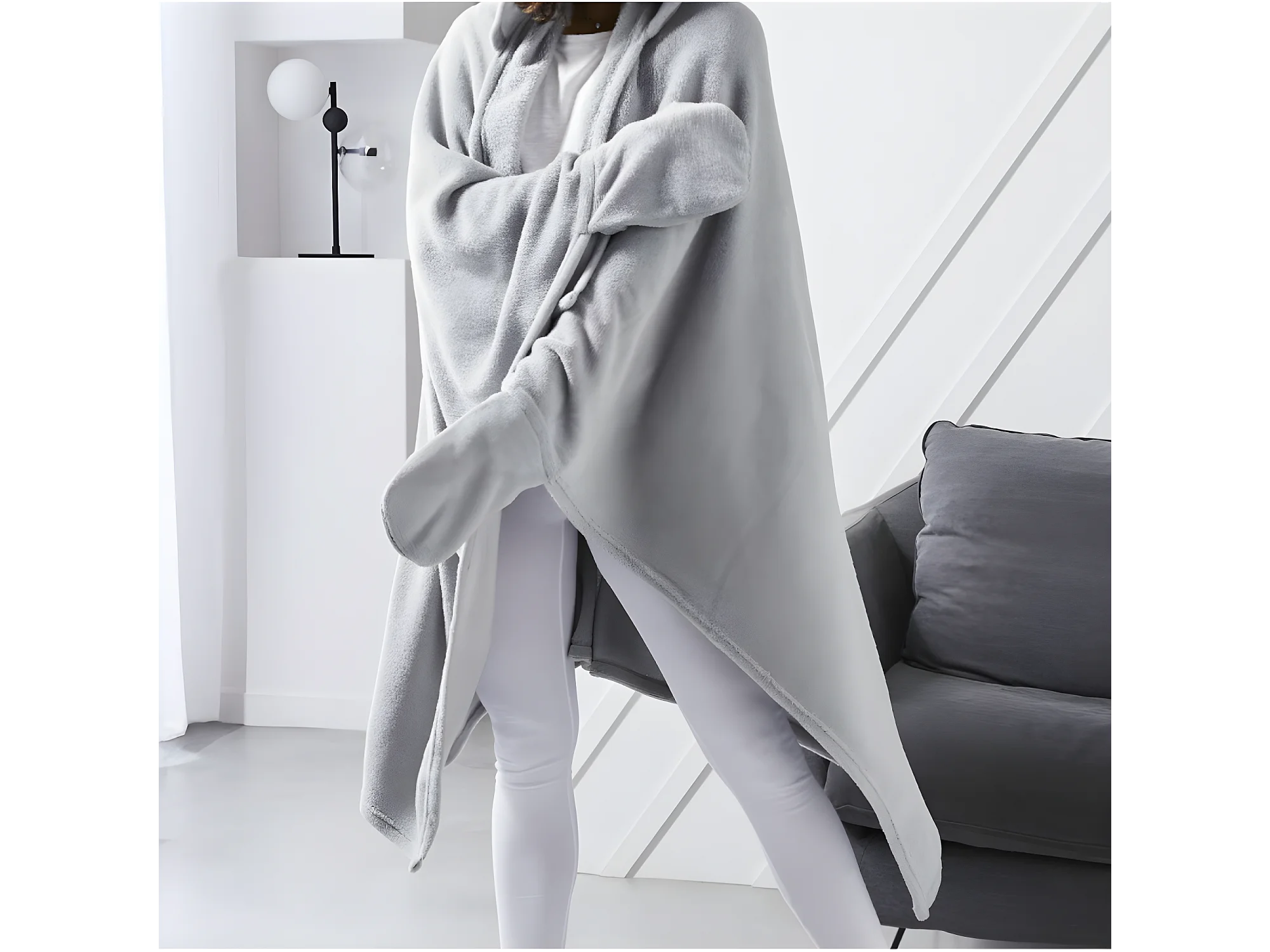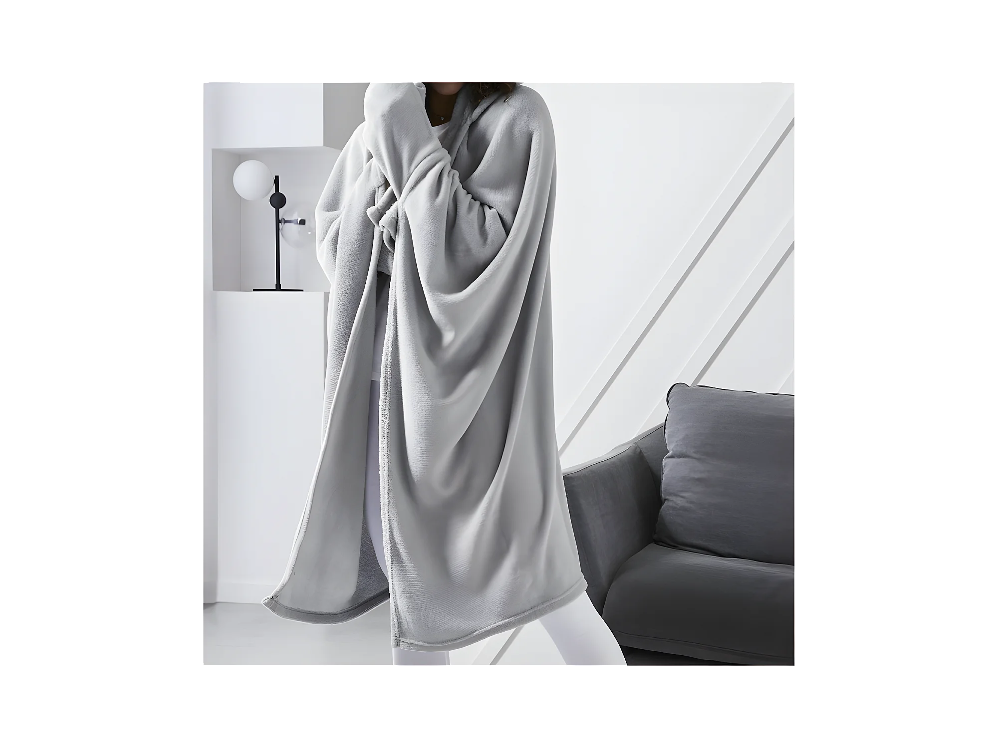 Fleece deken met mouwen en capuchon, staalkleur, 165 x 115 cm