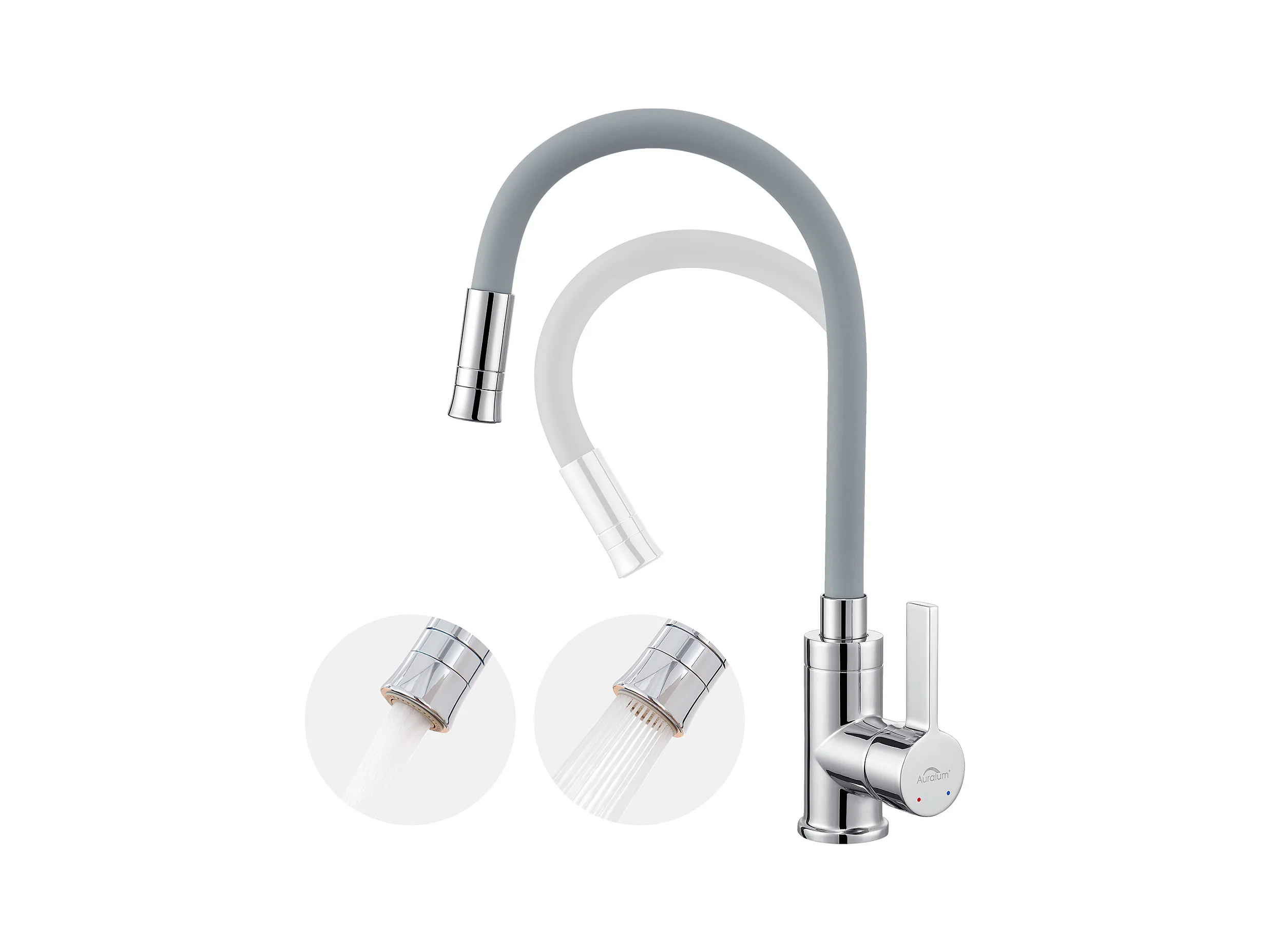 2 stks Auralummax Keukenmengkraan met Siliconenslang Flexibele Vervormbare Wastafelkraan met 2 Soorten Jets, 360° Draaibare Keukenkraan-Grijs