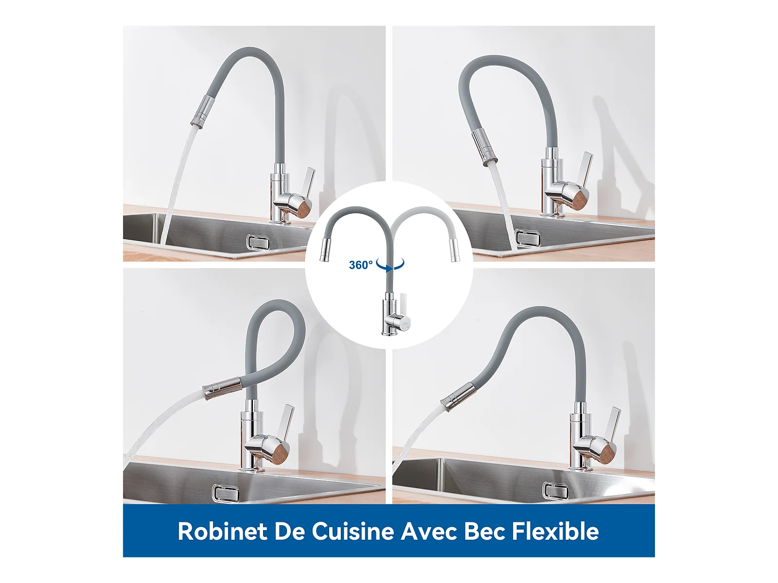 2 stuks Auralum max Flexibele Keukenmengkraan, 360° Draaibare Keukenkraan, met Flexibele Siliconen Slang, Warm/Koud Water Gootsteen Kraan (Grijs)