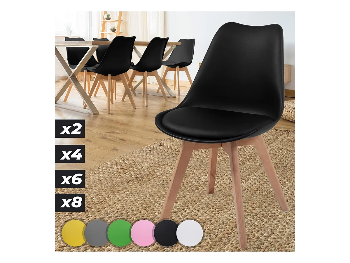 Floraya - Set 6 Scandinavische eetkamerstoelen met zitkussen - zwart
