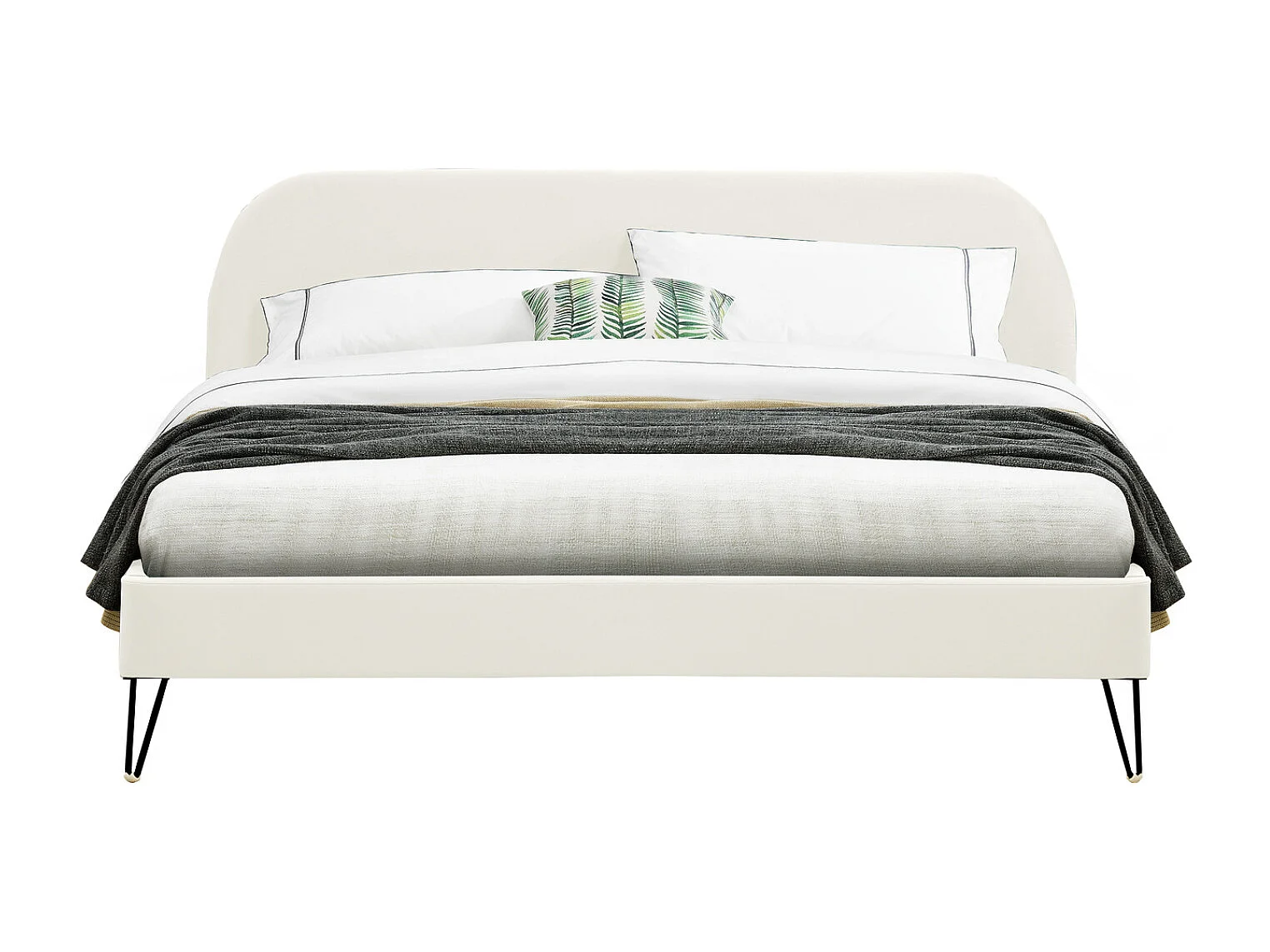 Fluweel Bed Beige 160x200 cm PHOENIX Zwarte Haarspeldpoten
