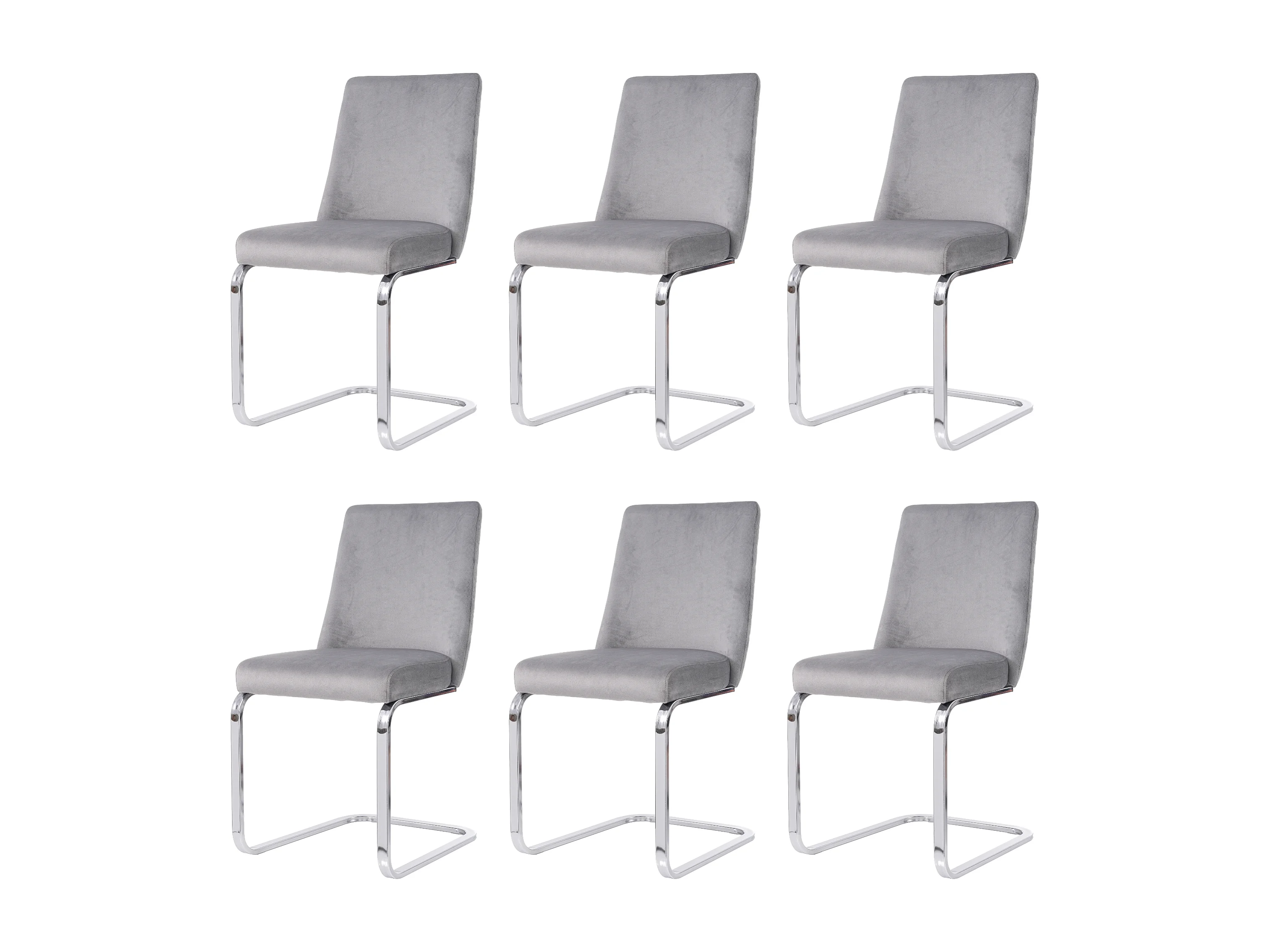 Eetkamerstoelen van fluweel, set van 6, luxe design, diamantvormige rugleuning, zilveren metalen poten, grijs (afmetingen niet van toepassing)