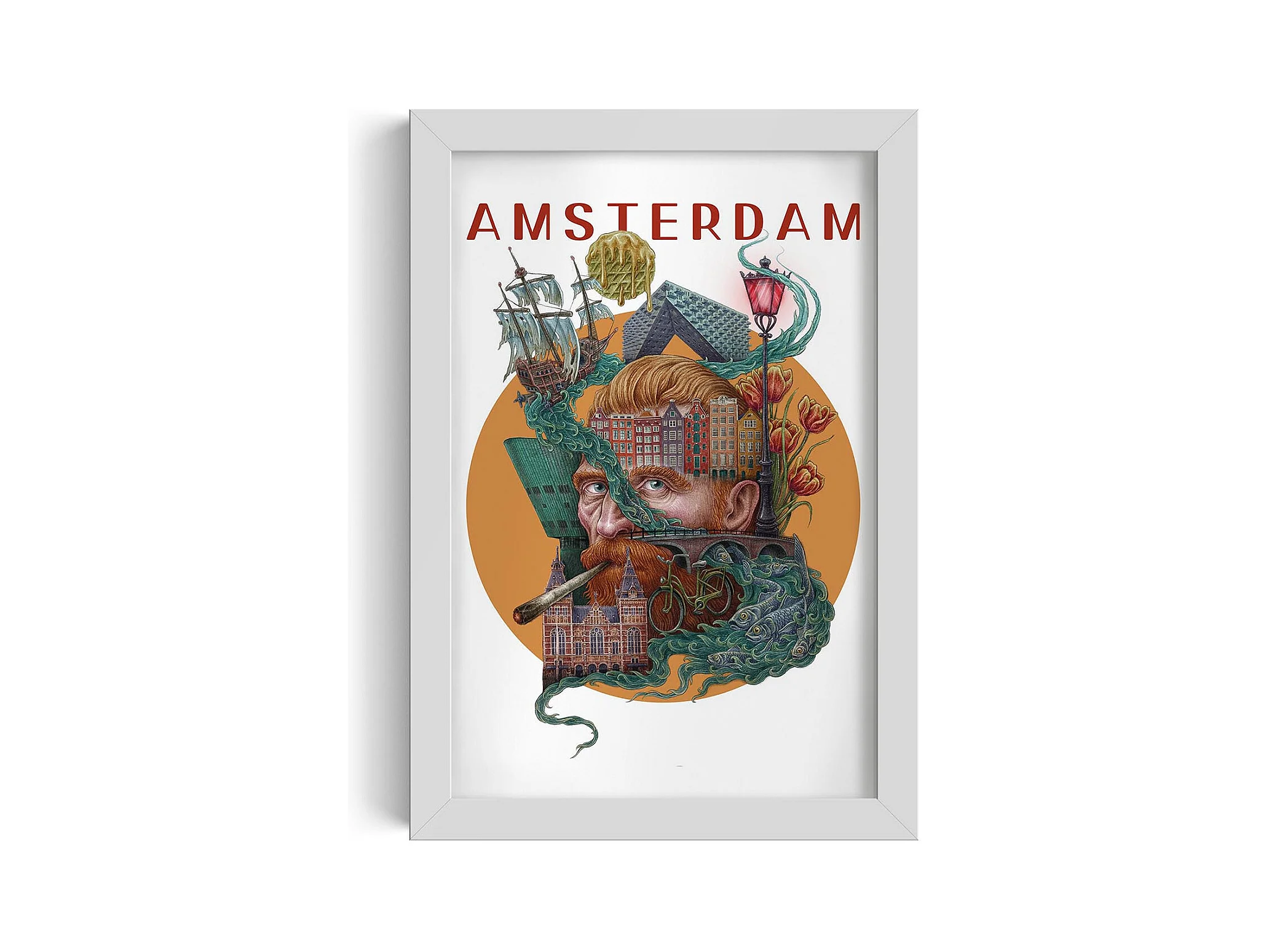 Poster, Nederlands stadsdecor, Amsterdam, 29,7x42 cm Amsterdamse kunst, stedelijke print.